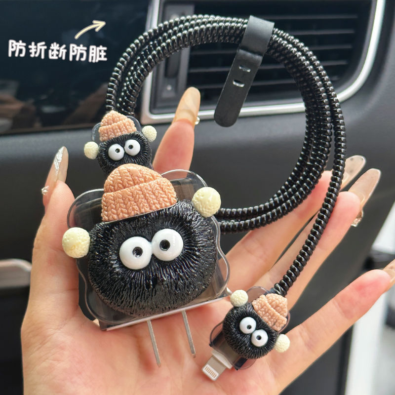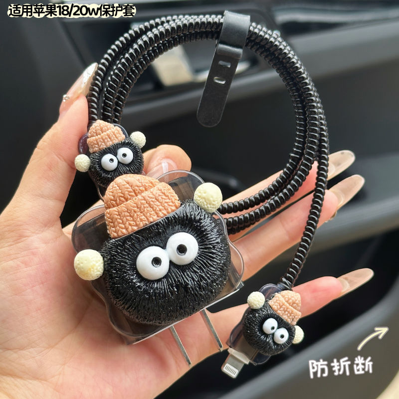 충전 헤드 보호 슬리브 데이터 라인 보호 이어폰 라인 보호-[고급 감각 큰 연탄] 사과 빠른 충전 20w 에 적합