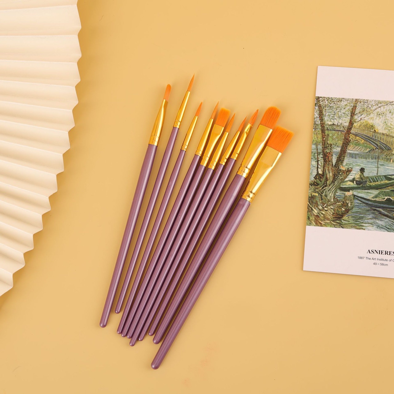 국경 간 뜨거운 판매 10 진주 빛 플라스틱로드 오일 브러시 초보자 그림 수채화 예술 유화 브러시 세트