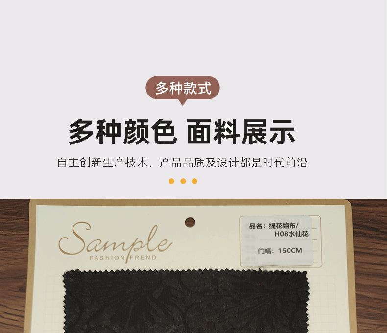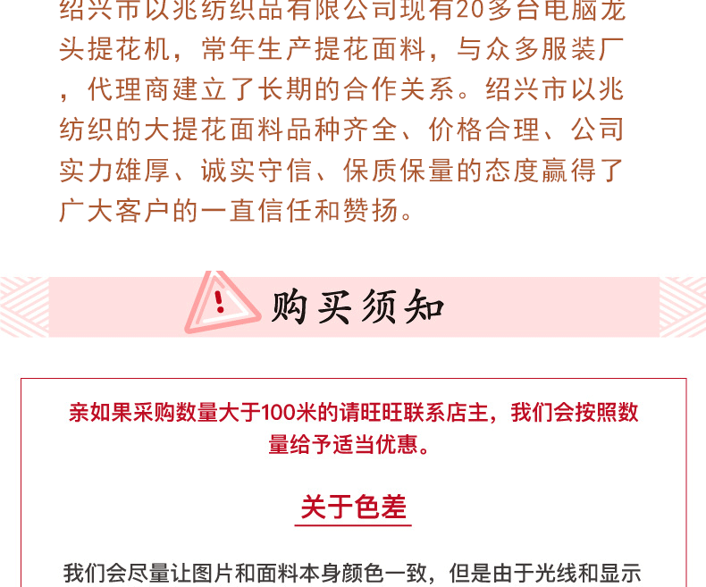 품질 기준 중국 섬유 산업 표준(FZ) 성분 및 함량 폴리에스터 95%, 스판덱스 5% 원사 지점 자세한 문의 밀도 자세한 문의 폭 150cm 무게 170 직물 구조 자카드 특정한 목적 식탁보, 식탁보 품목 번호 AC004 별명 자카드 크레이프 스타일 파인 자카드 상표 메가로 인기 요소 고전 색상 13호 퓨어 블랙 국경 간 수출을 위한 독점 공급원이 있습니까? 아니요 사양 AC004 (부조폭발) -