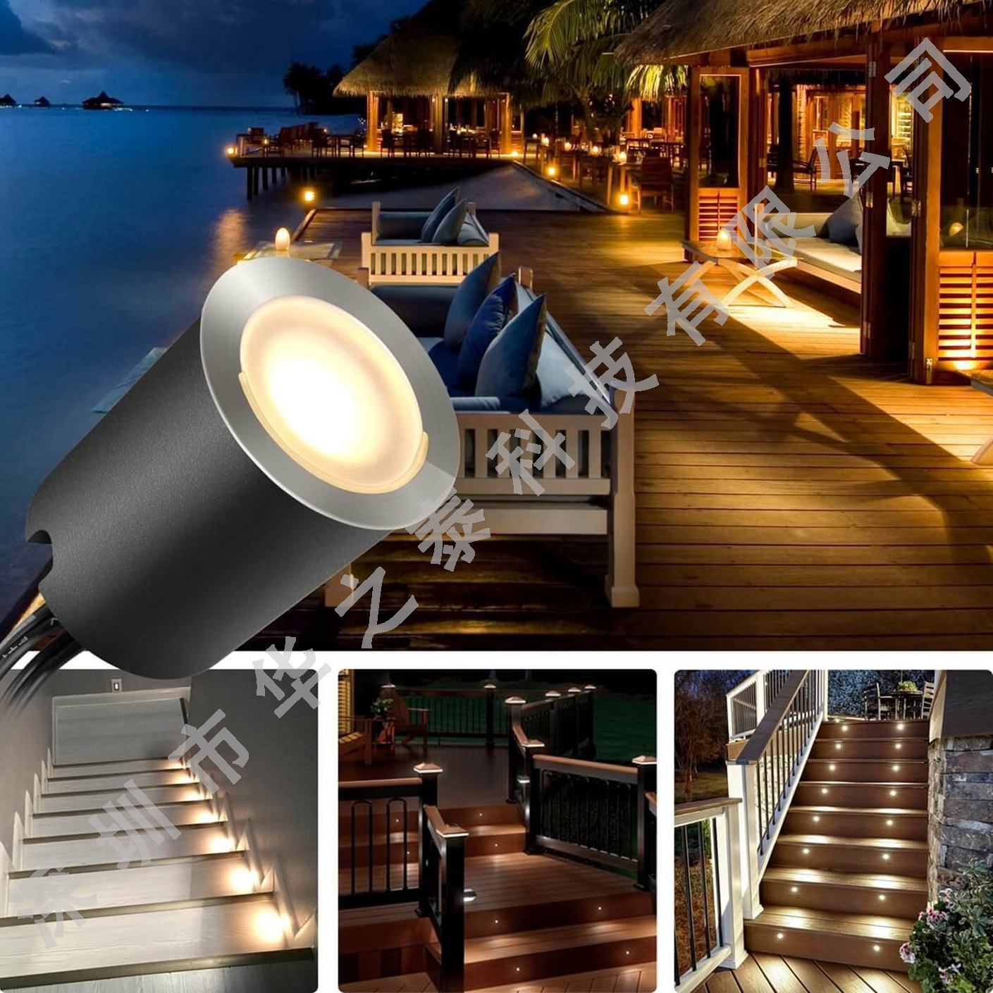 LED甲板灯主要适用于花园、庭院、台阶、广场、路道、橱柜、墙角、天花、楼道、轮船甲板等装修装饰场所