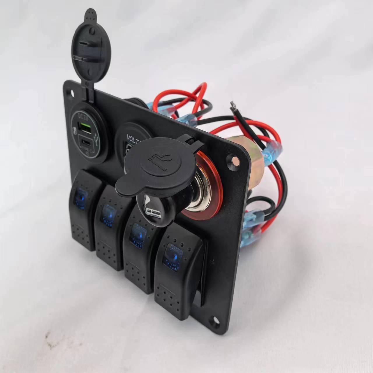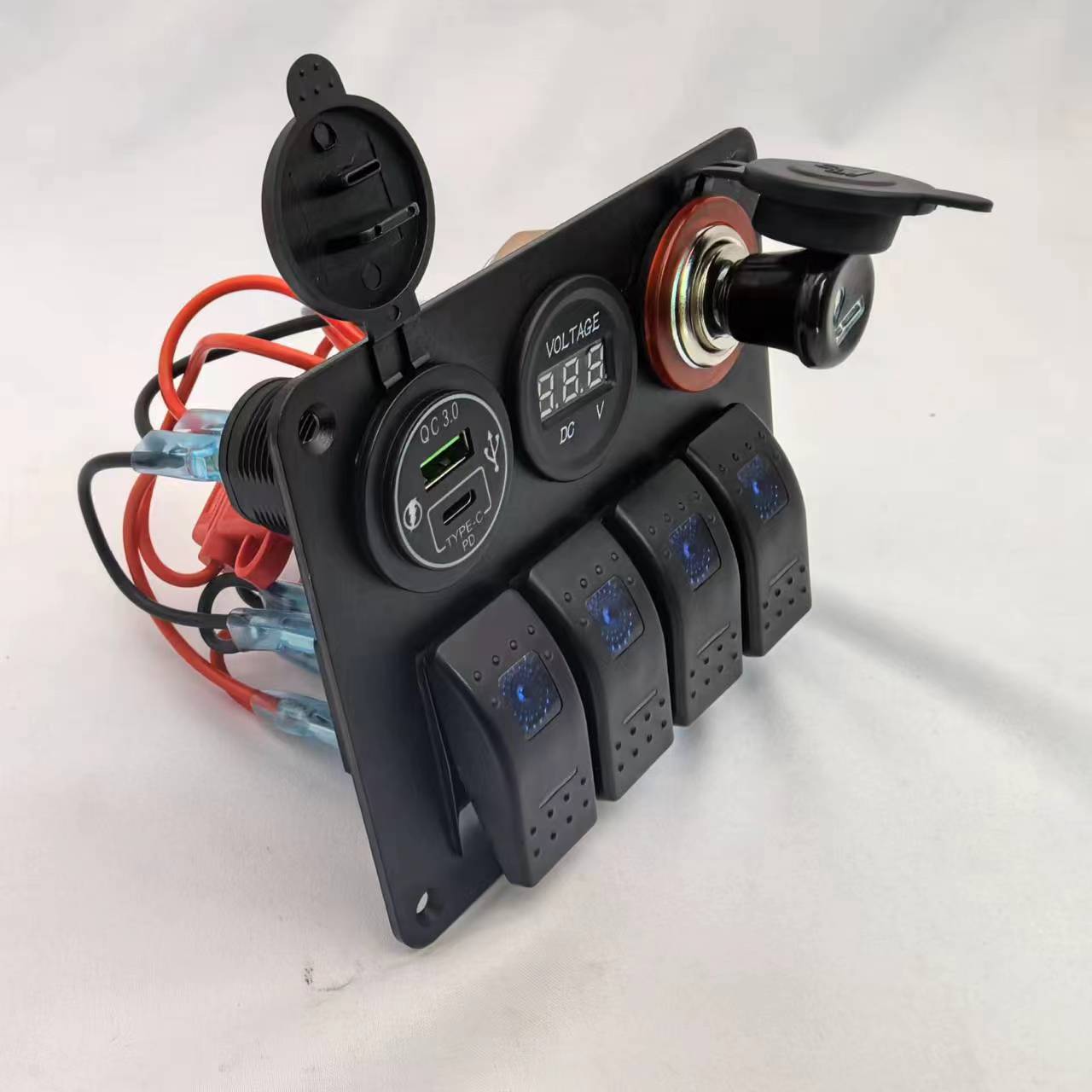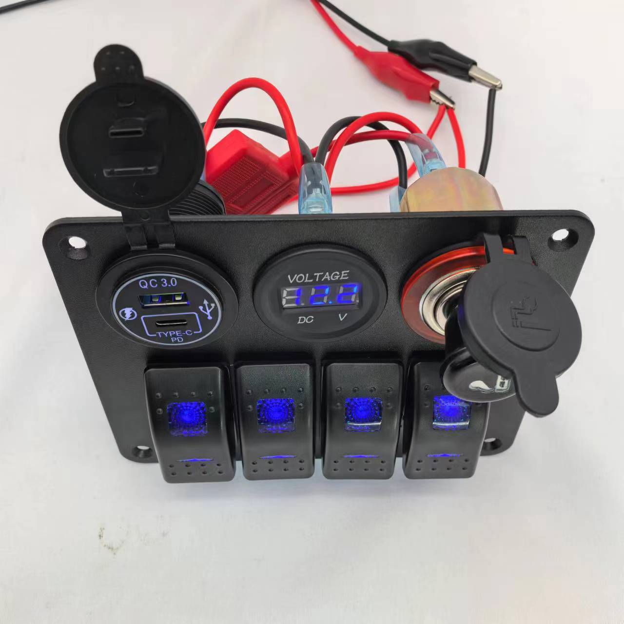 产品参数:开关/车充电压电流输入:12-24V