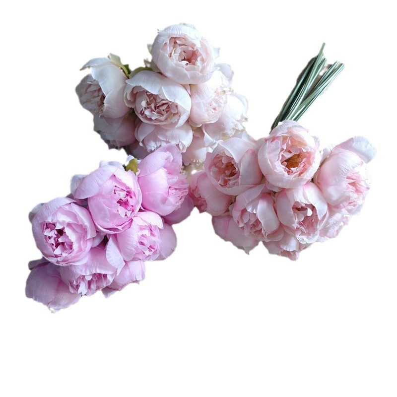 9 헤드 번들 차 장미 모란 장미 인공 꽃 폭발 번들 차 장미 꽃 사진 소품 공장 도매