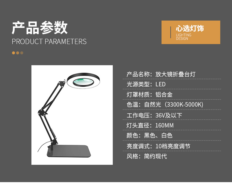 크기 직경 160MM 사양 화이트 메탈 클립 + 돋보기, 삼색조명 상표 희지밍 힘 15W 스위치 모드 버튼 유형 재료 알루미늄 합금: 램프 헤드 직경: 160MM 돋보기 직경: 110MM 5D 브래킷: 25CM/33CM 철 예술 처리 방법 샘플 처리 로고 라벨링 전압 ≤36V 국경 간 수출을 위한 독점 공급원인지 여부 예 스타일 현대적인 단순함 지능적으로 제어할지 여부 아니요 전원 공급 모드 USB 전원 공급 장치 주요 판매지역 유럽 밝기 조절이 가능한가요? 예 주요 다운스트림 플랫폼 독립 방송국 라이센스가 부여된 개인 상표가 있습니다. 아니요 유형 스크린 교수형 램프 제품 포장 소가죽 상자 포장, 포장 크기: 31.5*24*5.2CM, 단일 무게 1.55KG 품목 번호 SZ-001 제품의 힘 전력: 10-15W, 3톤 조광, 10단계 밝기 조절, 램프 비드: 72구슬, 2m개 제어 라인 -