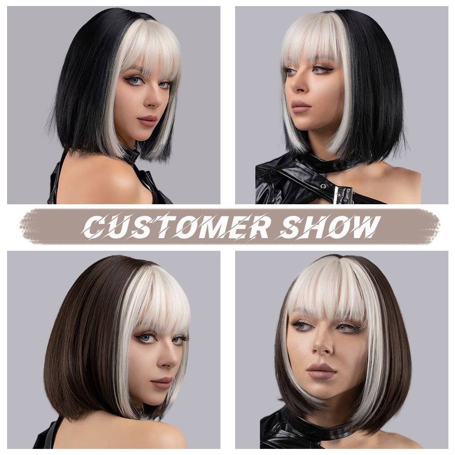 【品 名】:刘海款挑染短内扣头套
