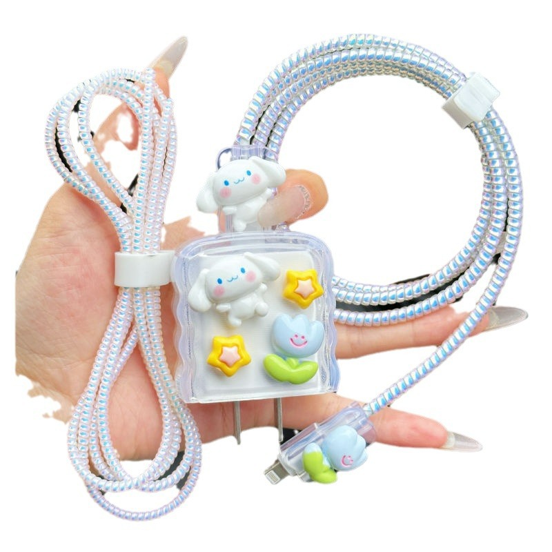 충전 헤드 보호 케이스 + 데이터 케이블 보호 [핫 세일 팩] - [플라워 제이드 시나몬 독] Apple 고속 충전 20w에 적합