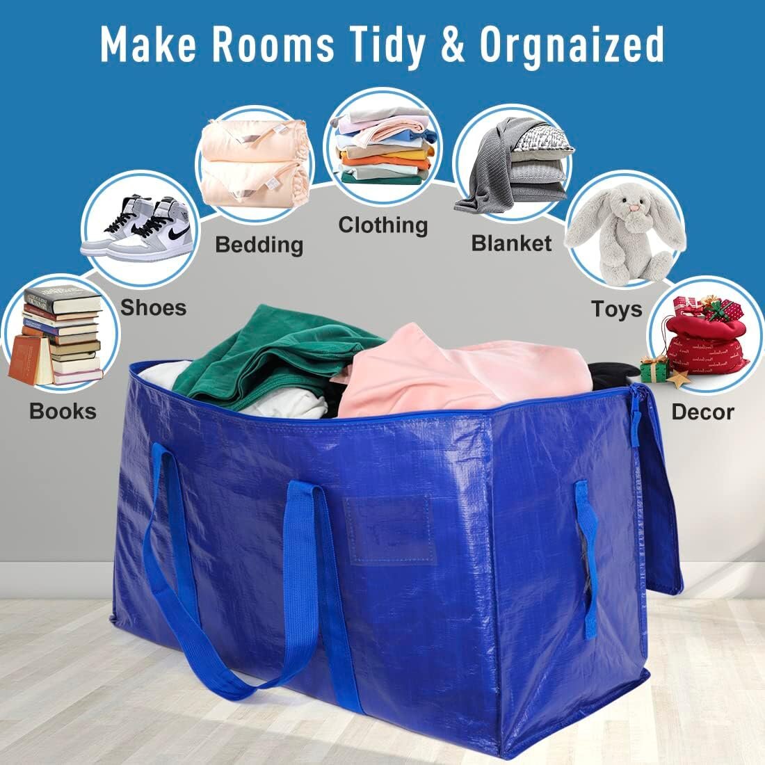 【产品详细信息】大容量移动包装袋采用环绕式手柄设计,光滑双拉链设计,闭合存储防尘,坚固耐磨,易清洗。季节性服装可防止衣服受潮和滋生霉菌。坚固的缝纫设计,加固手柄,防撕裂,安全承重,使用安全。标签口袋设计让您可以分类和标记衣服,使它们在移动和移动时方便拿取。 可折叠,存储,保存,保存和存储空间。- 【适用场景】搬家、存储、旅行、露营的包装袋。搬运用品 - 日常卡车移动、大学宿舍必备品、衣服橱柜整理和存放被子、户外野营、沙滩泳池派对物品存储、假日装饰存储、杂物房间存储。专业搬家公司的理想选择,解决了变化季节中凌乱的移动场景、杂乱的衣柜和潮湿的衣服。