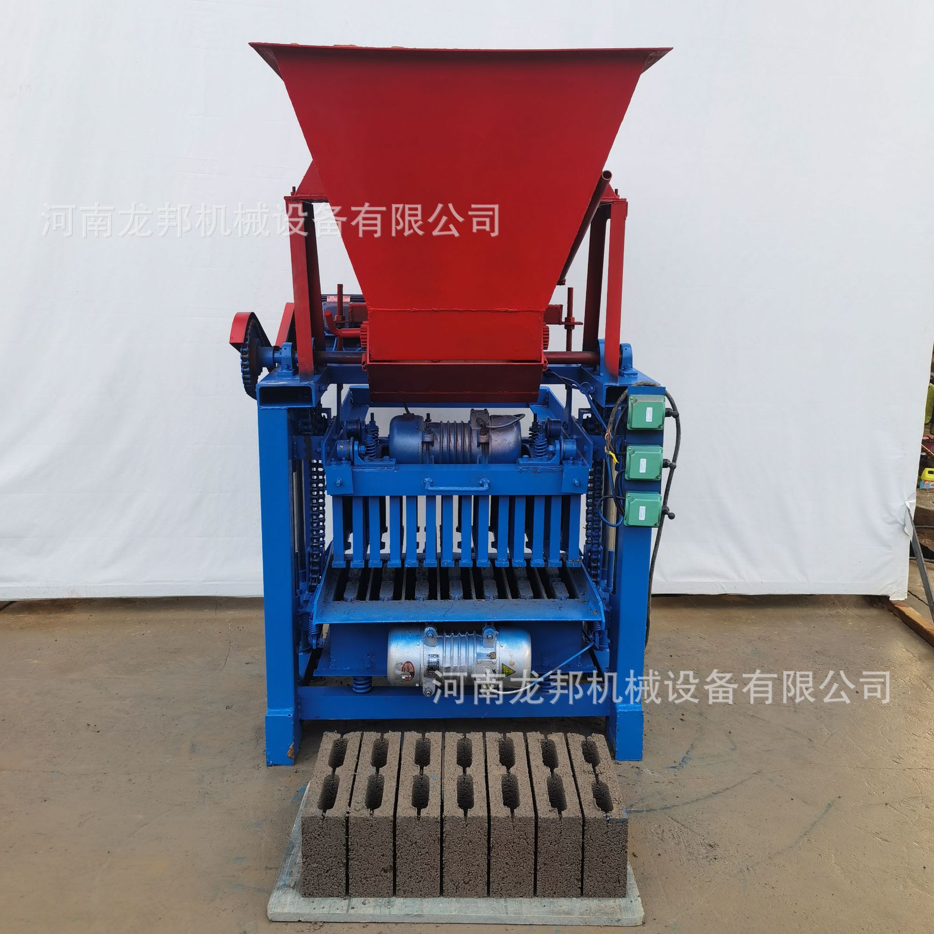 4-35砌块砖机运行稳定、高效、耐用。安上行程开关,增加了产品质量,压力高,性能好,易操作的特点,并配备电磁制动电机消余震,增加了生产效率,既省工又省电,投资小,是中小型投资者理想机型。小型砌块砖机结构简单、紧凑、操作简便,易维护、用功少、产量高、投资小。生产时上下加压,强振捣,小型砌块砖机适合生产标砖,其强度比粘土砖高,换不同模具后,还可生产垫块。生产垫块可使用:炉渣沙子碎石铝红渣电解铜渣煤矸石建筑粉煤灰火山渣等原料,原料丰富,随处可见,投资建厂,比较方便。小型砌块砖机是以粉煤灰、河沙、石子、石粉、粉煤灰、废陶粒渣、治炼渣等材料添加少量水泥生产新型墙体材料砌块的机器。新型墙体材料是以砌块和水泥砖为主的。大多采用液压的成型模式,也有采用震动成型的。砌块成型机静音、静压模式。无噪音,产量高,密实度高。无托板养护,养护周期短。用人少,对工作地面无要求,产品种类多。
