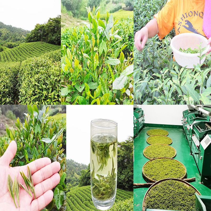 青叶全部手工采摘。确保茶叶青叶的质量。进入炒制车间立即进行全自动炒制,箱装 然后进冷库。拒绝第二次污染茶叶。确保每一颗茶叶成为真正无污染的健康饮品