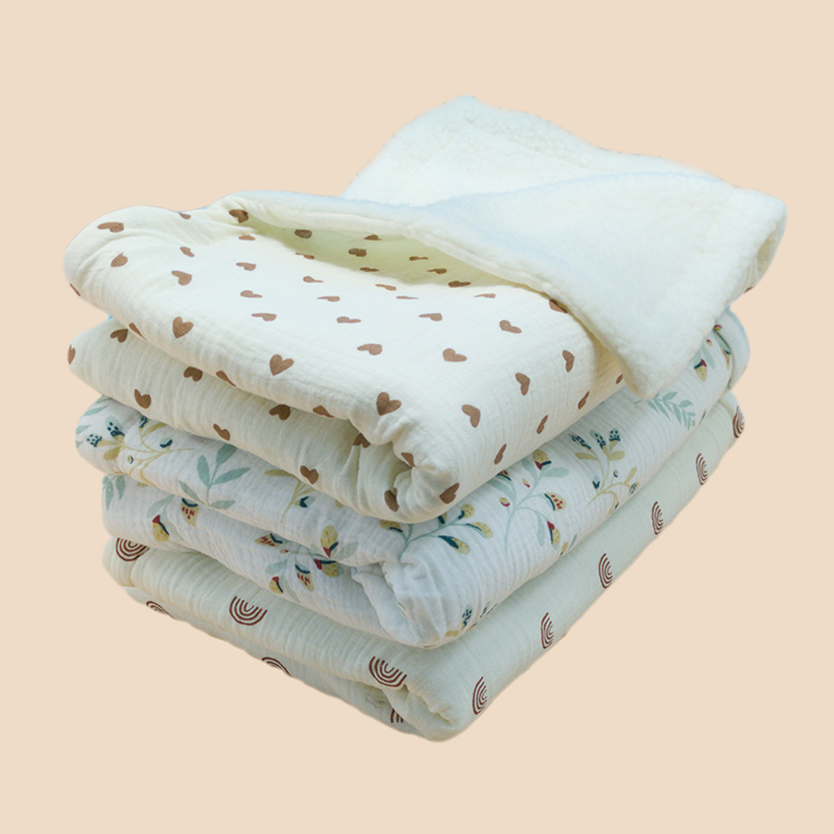 产品名称:绉布印花羊羔绒毯子
