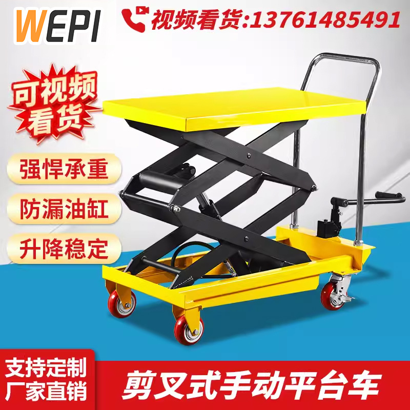 이동식 유압 플랫폼 트럭 플랫카 가위형 핸드 푸시 리프트 플랫폼 이동식 리프트 전동 접이식