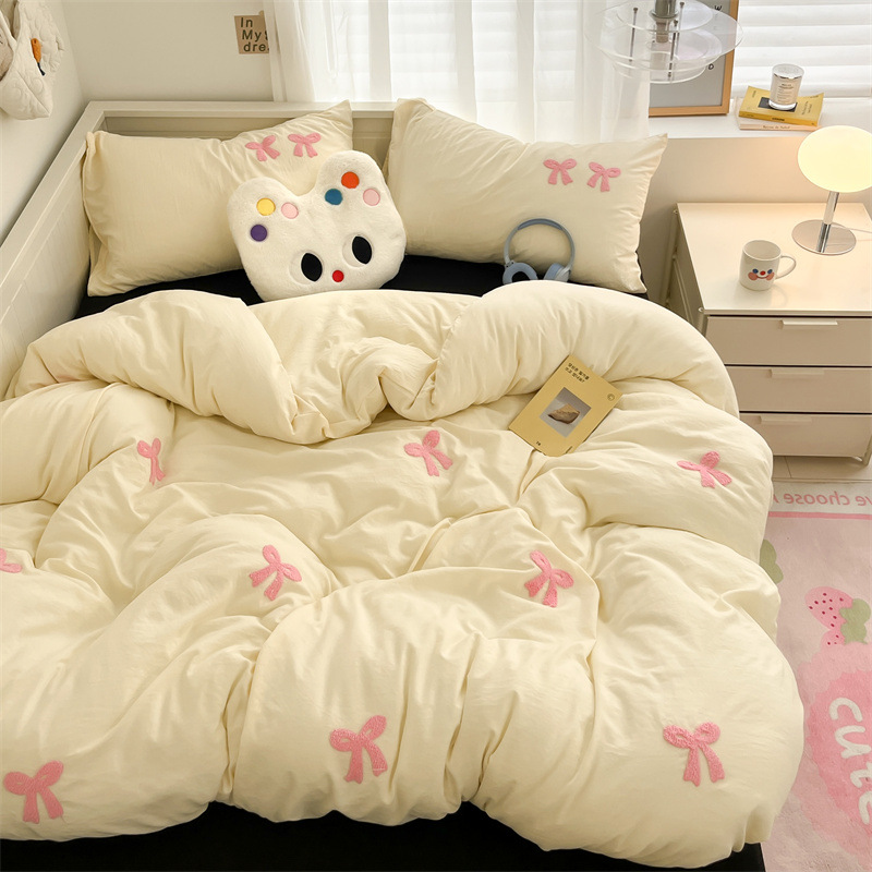 브랜드 다른 날염 및 염색 공정 반응성 인쇄 및 염색 직조 과정 씻다 무게 1000g(포함)~1500g(제외) 처리 및 맞춤화 아니요 패턴 보우-블랙 로즈 핑크 워싱 코튼 스타일 현대적인 단순성 치수 1.8m 매트리스 커버 4개 세트 - 이불커버 200*230cm 재료 워시드 코튼 침구 분류 4개 세트 일반 납세자인가요? 아니요 -