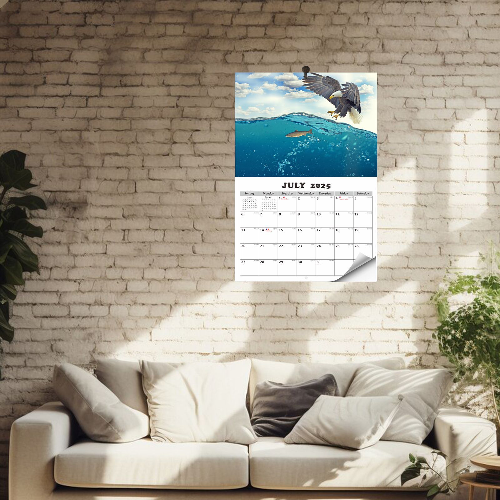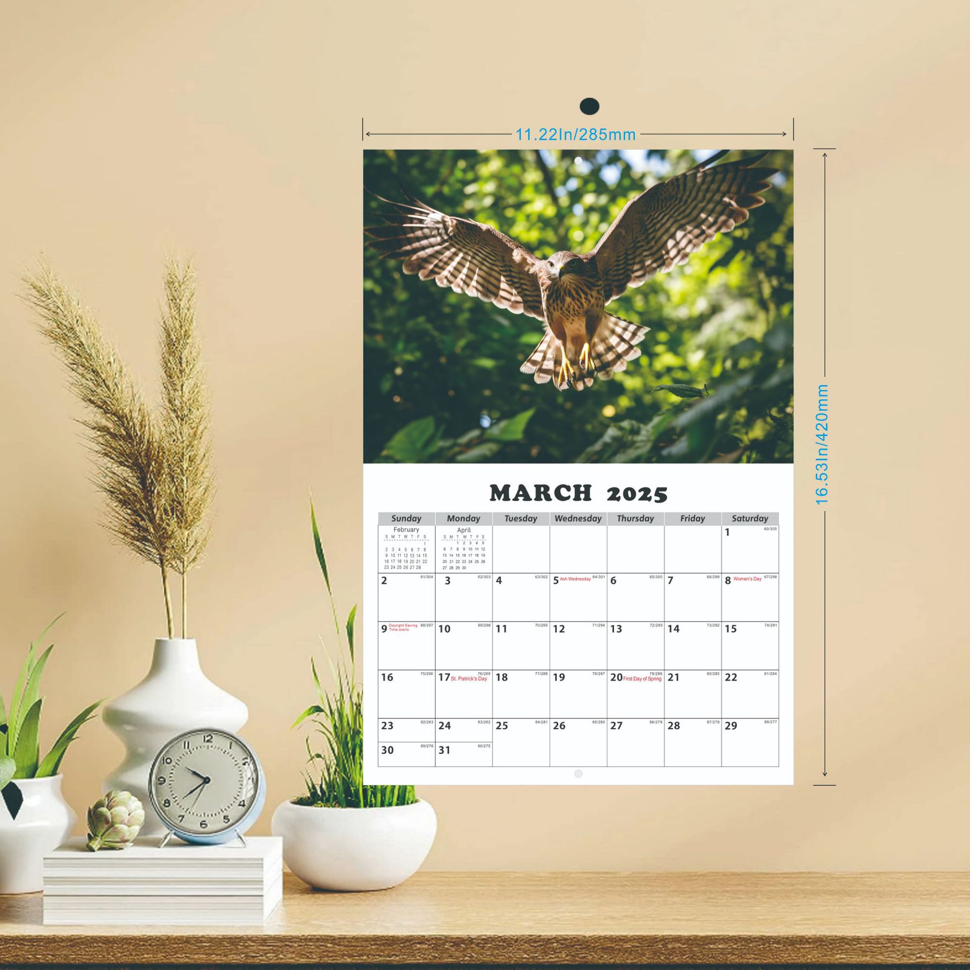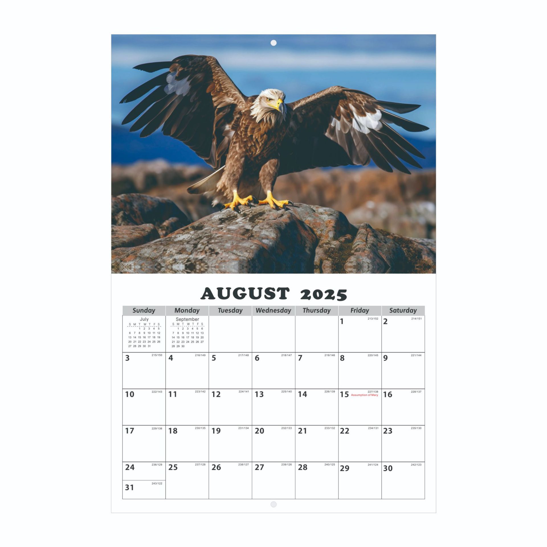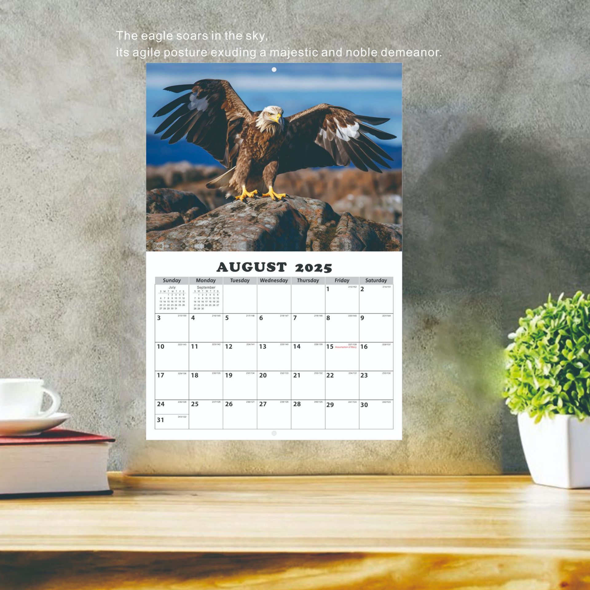老鹰主题英文挂历,15张不同的老鹰高清图片,英国、法国、德国、加拿大、美国五个国家的节日假期;