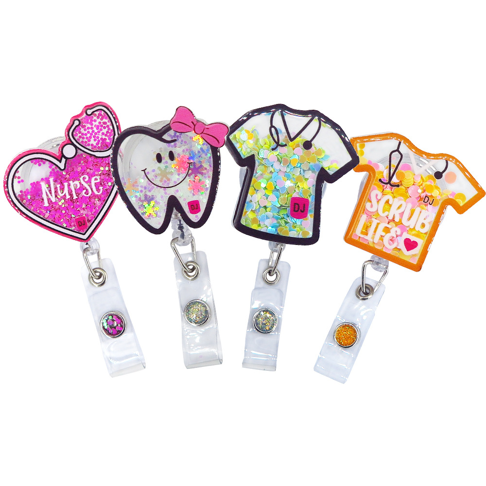 跨境创意闪闪亚克力胸牌卡挂件办公室可爱亚克力胸卡夹热销彩色