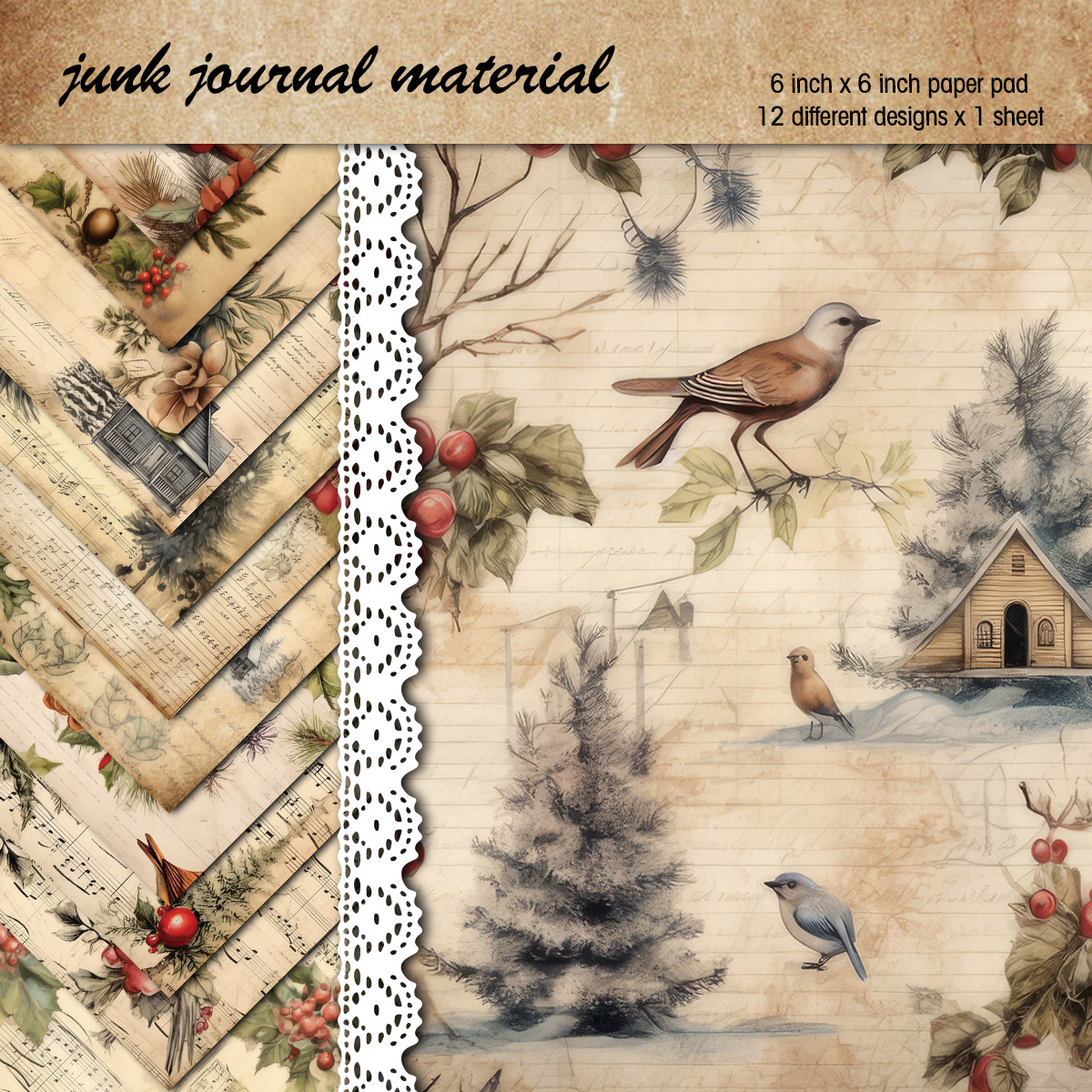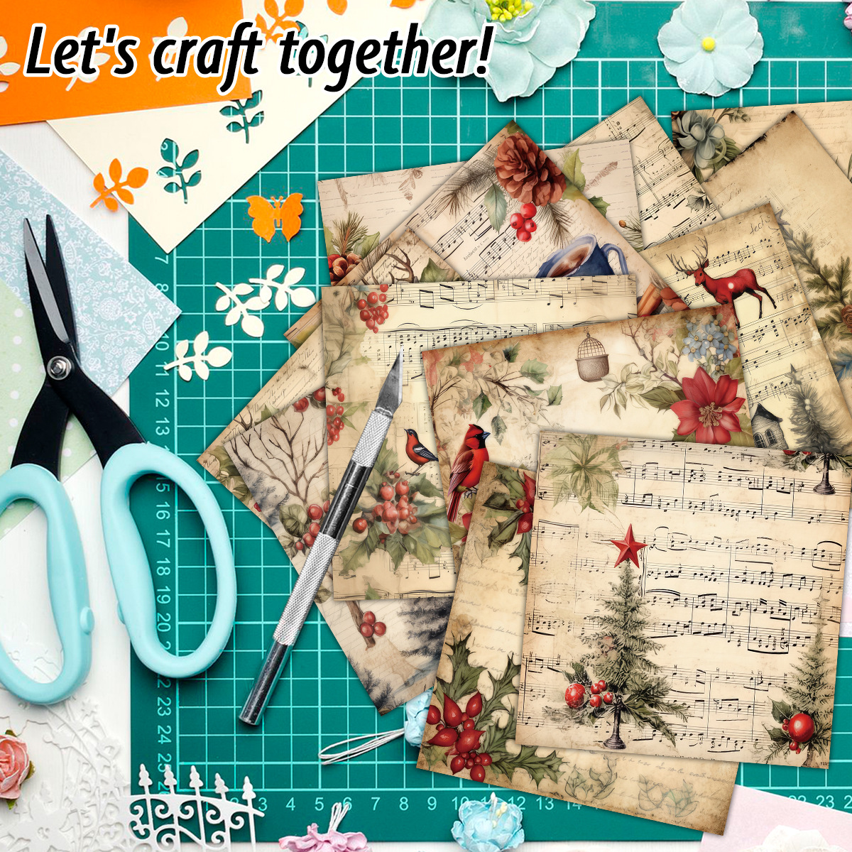 12张/包圣诞素材纸(12个款,每款1张)