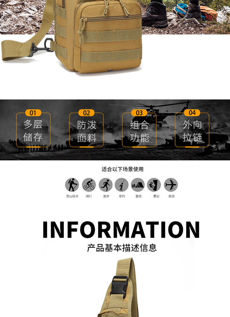 재료 옥스포드 천 기능 도난 방지 브러쉬 품목 번호 전술 가슴 가방 1 상표 응축된 용량 사막 디지털 적용 가능한 성별 중립/남성과 여성 모두 안감 질감 옥스포드 천 출시 연도 및 시즌 2023년 봄 색상 20L 이하 라이센스가 부여된 개인 상표가 있습니다. 예 적용 가능한 시나리오 야외 스포츠 무늬 단색 제품 카테고리 스포츠 가방 -