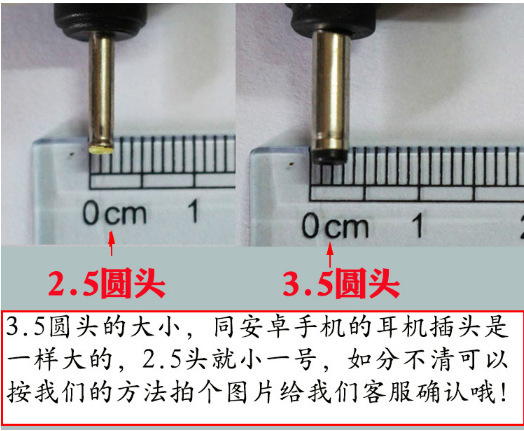 接口尺寸图,亲们一定要搞清楚,是3.5MM还是2.5MM的圆头DC,否则就不能用的。
