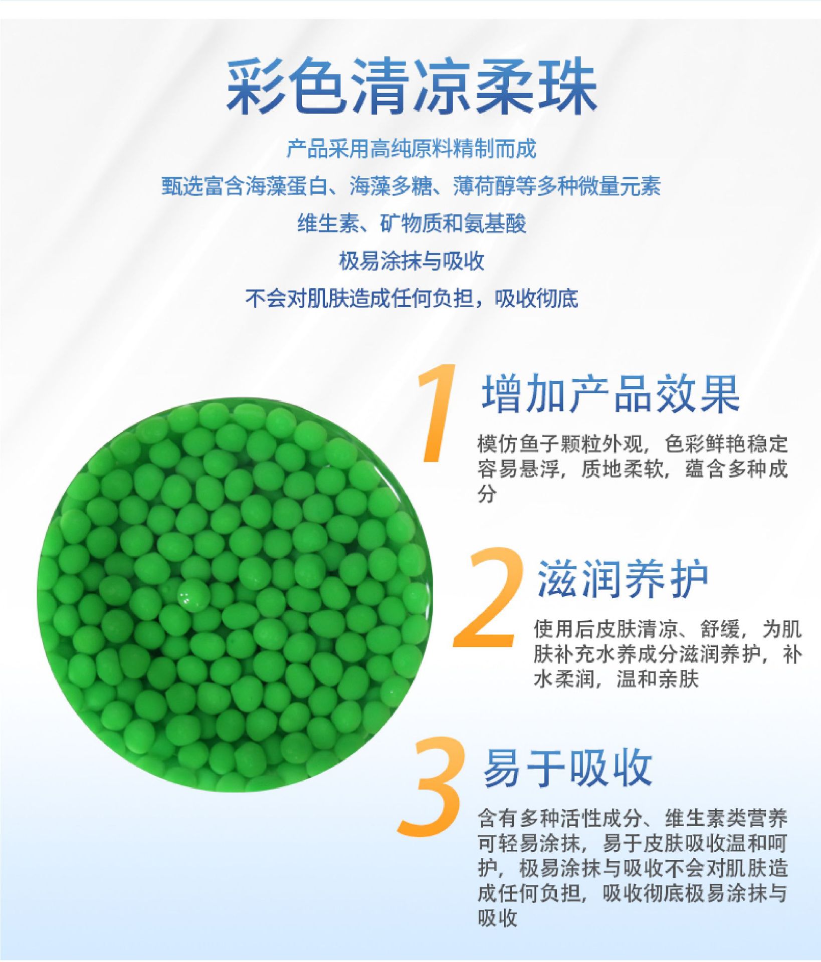 시원한 생선 알 입자의 뜨거운 판매 소스 공장 시뮬레이션 깊은 보습 피부 보습 부드러운 보습은 시원한 여름 경험을 가져옵니다