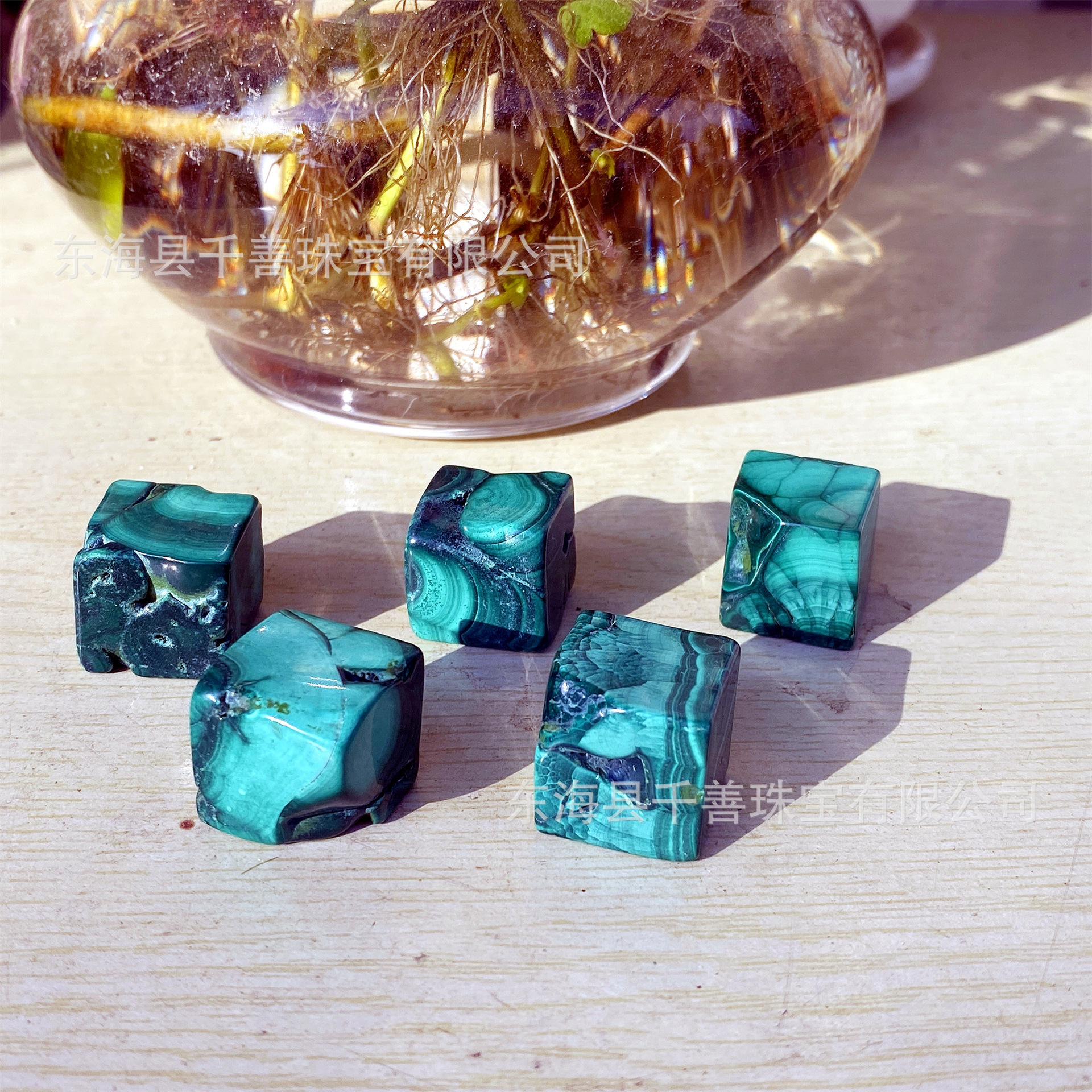 在材质上,这款孔雀石方块保持了其原始的自然风貌,未经过多余的人工处理,保留了石头表面自然的凹凸感与微小气孔,触感真实且富有层次。这不仅增添了观赏时的趣味性,也让每一件作品都拥有了独一无二的身份标识。孔雀石的硬度适中,既不易磨损又便于雕琢,使得这款方块在保持自然之美的同时,也展现出匠人的精湛技艺。