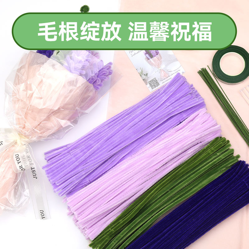 국경을 넘는 인기 DIY 트위스트 스틱 라벤더 꽃다발 수제 재료 패키지 손잡이 꽃다발 명절 꽃 선물