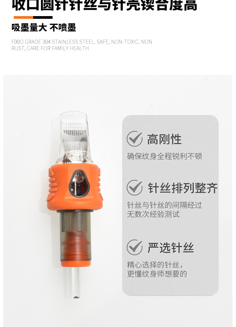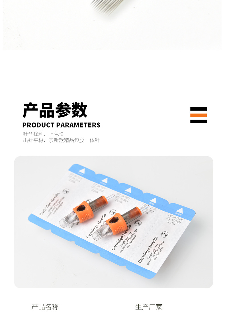 新款包胶纹身一体针,针嘴经历客户几万盒的购买使用,圆针稳定储墨大,排针锋利流程,无需担心操作体验。纹身壳中间包环保软硅胶,纹身工作时候,手指更加舒服握笔,使用针更加精准,包装精美,激光打印字体,每根针都精挑细选,可以定制,可以直接大货零售!欢迎咨询!