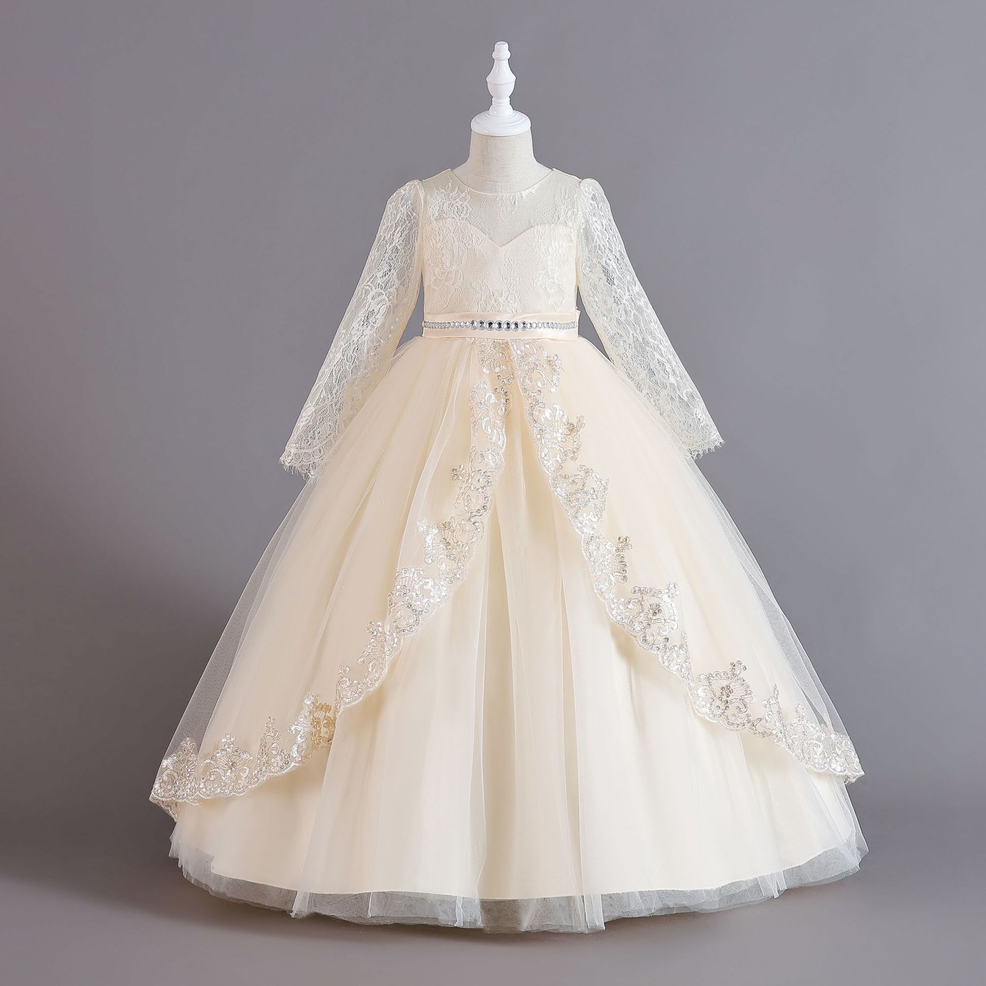 爆款长袖儿童礼服花童女孩公主裙女高级圣诞婚纱连衣裙girl dress상품정보 제공고시