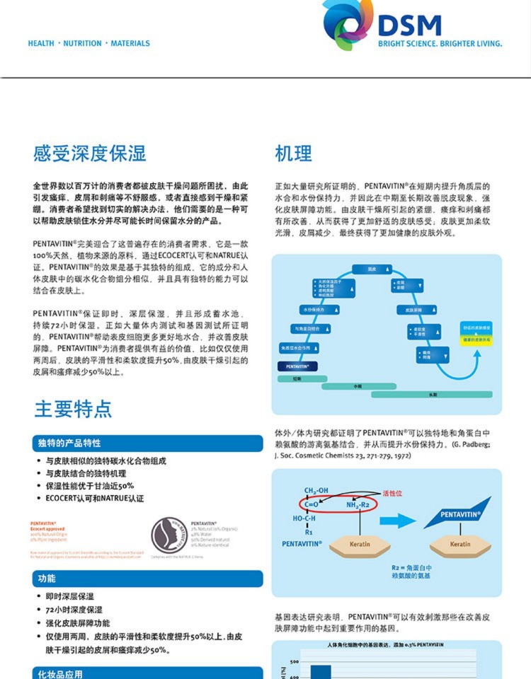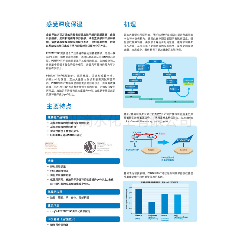 네덜란드 DSM 72 시간 보습 인자 천연 수화 보습 원료 물 잠금 자석 Pentavitin