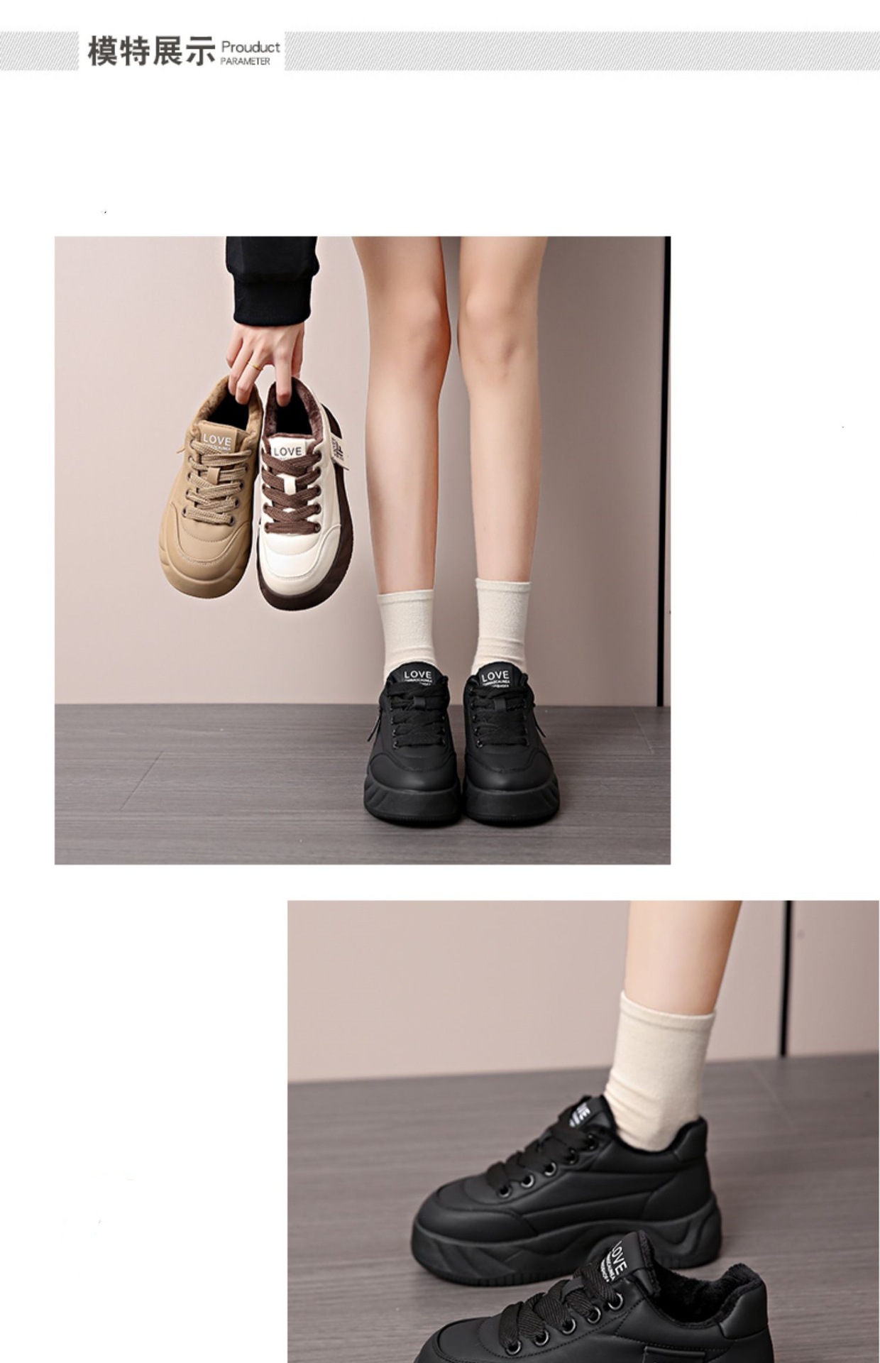 제품 카테고리 스포츠 스타일 캐주얼 신발 원산지 저장성 타이저우 스타일 여가 계절에 적합 가을 적용 가능한 성별 여성 어퍼 소재 인공PU 인기 요소 방수 플랫폼 공급 카테고리 스팟 가장 빠른 배송 시간 1 발가락 모양 둥근 머리 굽 높이 미드힐 (3-5CM) 색깔 카키색 [얇은 부분] 크기 40 기능 내마모성 품목 번호 스타 H-01 패턴 단색 밑창 소재 고무 적용 가능한 스포츠 보편적인 재고 여부 예 재고 유형 전체 주문 입는 방법 프론트 타이 내부 소재 인공 짧은 봉제 인형 개구부 깊이 얕은 입(7cm 이하) 상단 높이 로우탑 깔창 소재 인공 머리카락 적용 가능한 시나리오 매일 출시 연도 및 시즌(출시 시간) 2024년 겨울 가장 늦은 배송 시간 4~7일 닫는 방법 레이스업 적용 가능한 연령 그룹 성인 -
