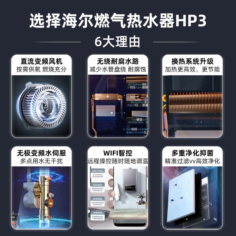 하이얼 가스 온수기 물 서보 일정한 온도 3/6 리터 가스 가정 목욕 강제 행 지능형 부동액