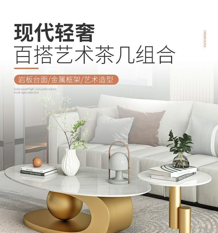 라이트 럭셔리 이탈리아 스타일 커피 테이블 크림 스타일 록 플레이트 티 테이블 홈 거실 인기 테이블 인터넷 유명한 간단한 렌탈 룸 커피 테이블