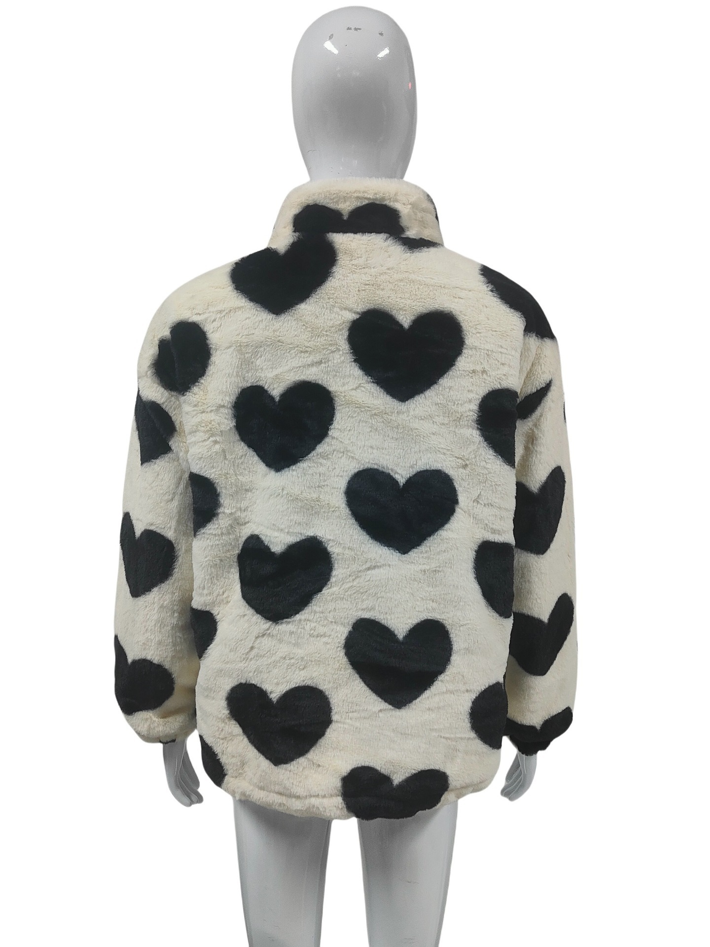 跨境女士冬季假皮草大衣仿皮草心形拉链保暖宽松外套女