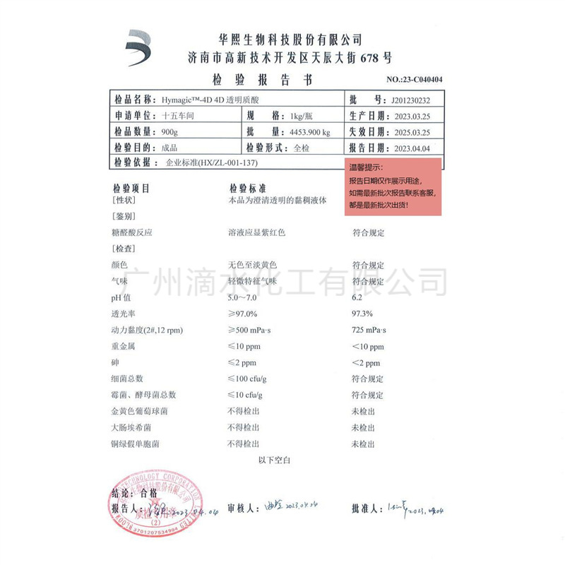 4D 나트륨 Hyaluronate 솔루션 Huaxi Bio Shandong Furuida Hyaluronic Acid 보습 에센스 Hyaluronic Acid 솔루션