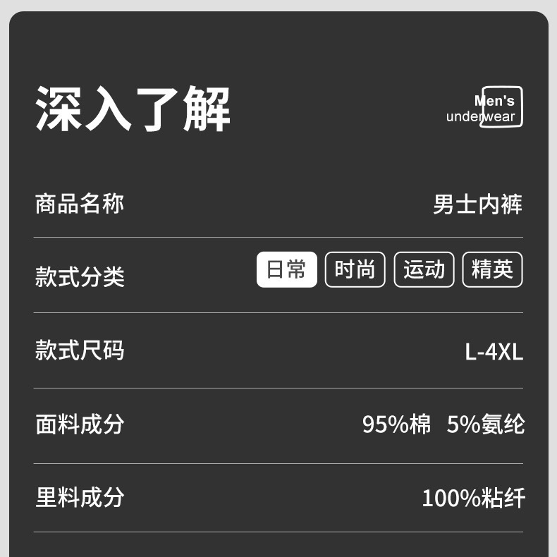 기능 항균 브랜드 지아유메이 품목 번호 새로운 통조림 남성 속옷 원단명 면 직물 개수 30개 직조 방법 뜨개질 포장 형태 단일 캔 OEM 지원 여부 지원되지 않음 주요 원단 구성 면 가랑이 안감 구성 면 원산지 산터우 허리 모양 중간 허리 원활한가요? 예 패턴 단색 적용 가능한 군중 카테고리 성인 색깔 그레이 [공장 직매] 크기 4XL【 80-90kg 】 수입 여부 아니요 국경 간 수출 전용 공급 여부 아니요 시장 출시 시간 2024년 봄 주요 원단 성분 함량 90%(포함)-95%(제외) 계절에 적합 모든 계절에 적합 가랑이 안감 성분 함량 95%(포함)-100%(제외) 적용 가능한 성별 남성 -
