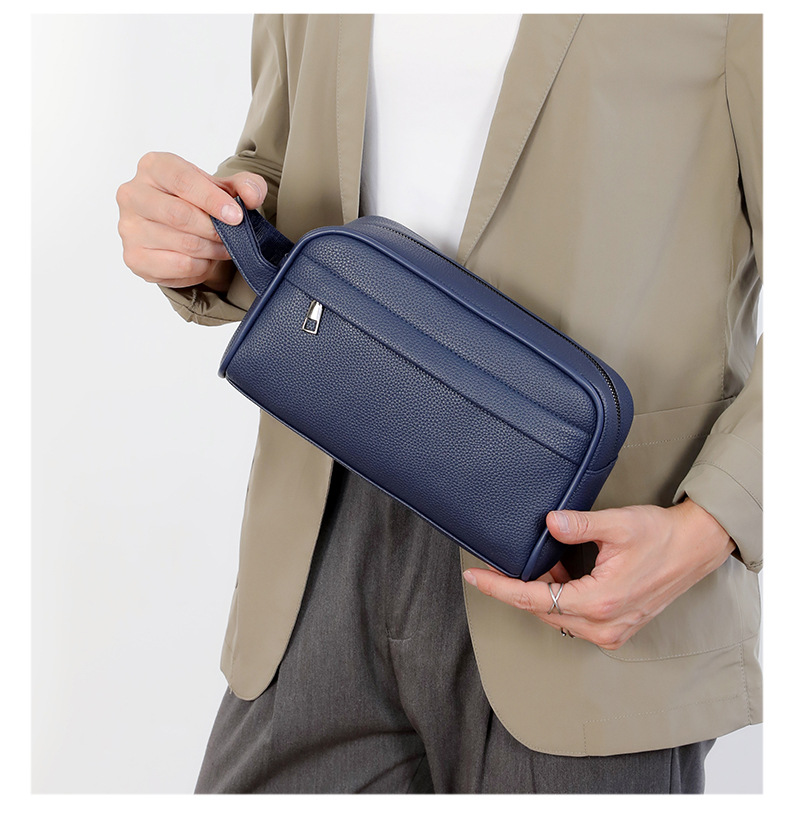 스타일 국경을 넘는 트렌드 품목 번호 JT-9916 리치 패턴 재료 pu 기능 내마모성 브랜드 다른 패턴 단색 인기 요소 재봉사 안감 질감 폴리에스테르 색깔 파란색 라이센스가 있는 개인 브랜드가 있습니다. 예 출시 연도 및 시즌 2025년 봄 적용 가능한 시나리오 데일리 매칭 컴퓨터 크기를 수용합니다 8inch 크기 14*10*26 적용 가능한 성별 남성 제품 카테고리 남성용 클러치 백 -