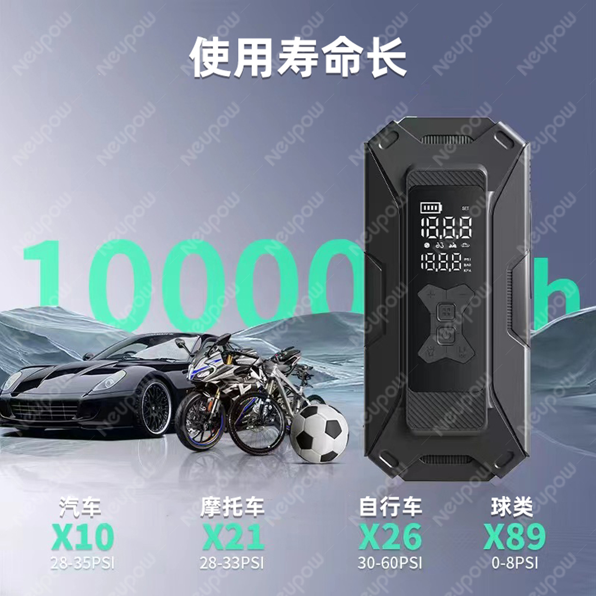 5. 最大负载电流 ≦10A模式:气垫、充气、搭电、汽车、摩托车、自行车、球类