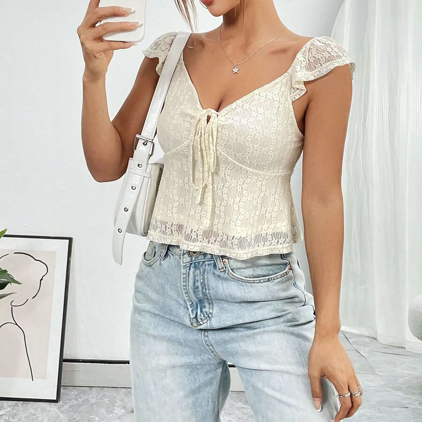 원단명 쉬폰 주요 원단 구성 폴리에스테르(폴리에스테르 섬유) 주요 원단 구성 2 스판덱스 패턴 레이스 스타일 통근 스타일 장인정신 자수/자수 브랜드 다른 품목 번호 SY241225 버전 슬림핏 옷 길이 짧은 스타일(40cm<길이 ≤50cm) 칼라 종류 V넥 소매 유형 연잎 소매 소매 길이 7부 소매 인기 요소 레이스업 출시 연도/시즌 2025년 봄 색깔 검은색 크기 L 스타일 유형 기질 통근 입는 방법 풀오버 주요 원단 성분 함량 95% 이상 국경 간 스타일 유형 섹시한 여자 적용 가능한 성별 여성 국경 간 공급 여부 예 주요 원단 성분 2 함량 30% 이하 주요 하류 판매지역 1 유럽과 미국 주요 하류 판매지역 2 동남아 -