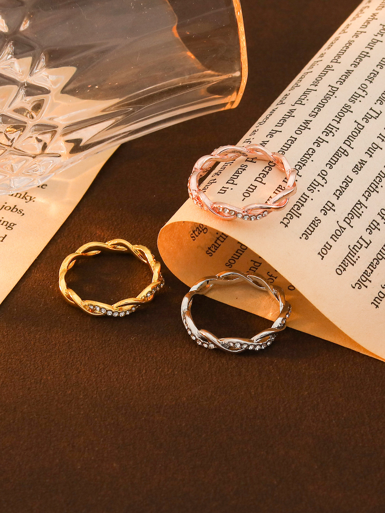 跨境热卖麻花镶钻情侣对戒 女士满钻扭曲戒指 时尚简约高级感指环女饰品批发货源