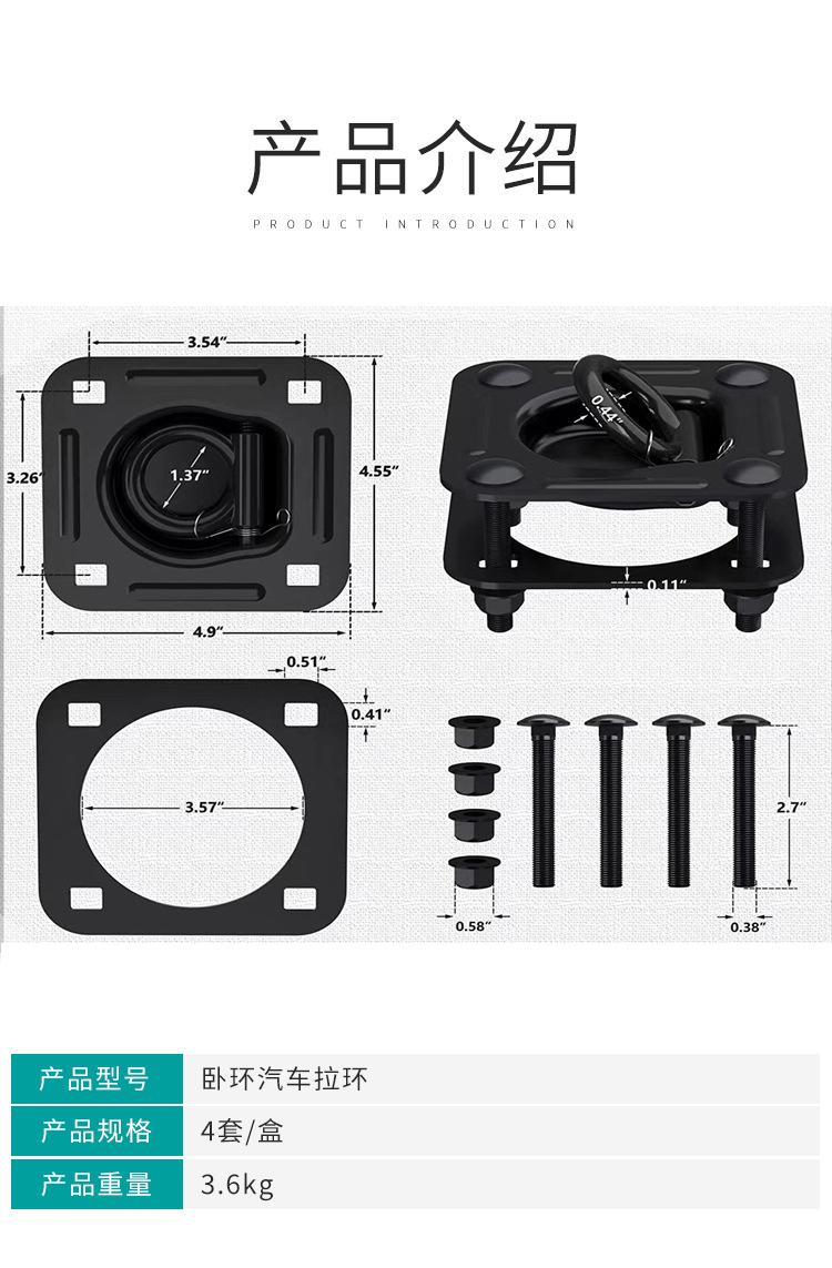 브랜드 다른 품목 번호 수평 링 자동차 당김 링-아님 재료 합금강 적용 범위 자동차, 밴, 평판 트럭 등 사양 블랙 4팩 name Car pull ring -
