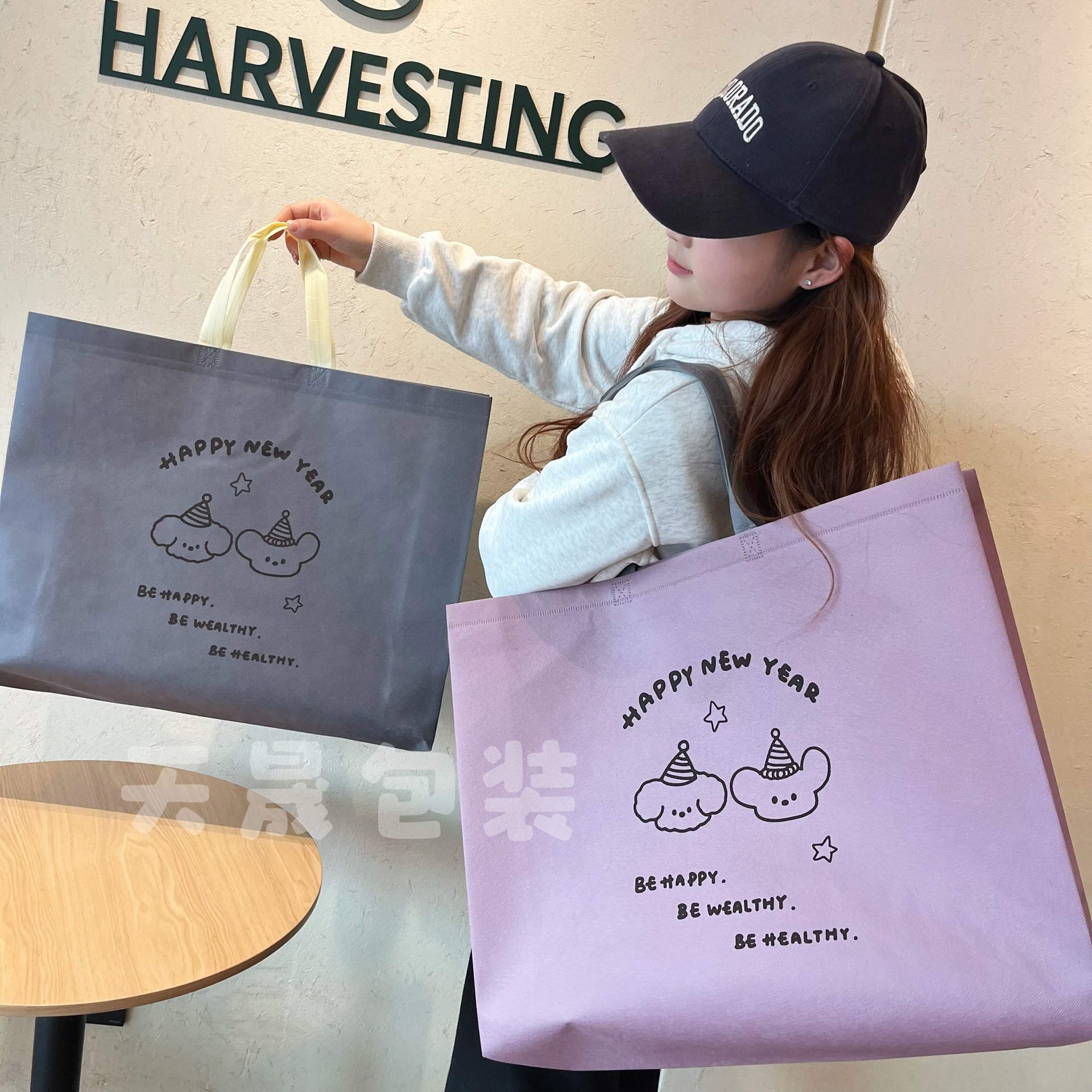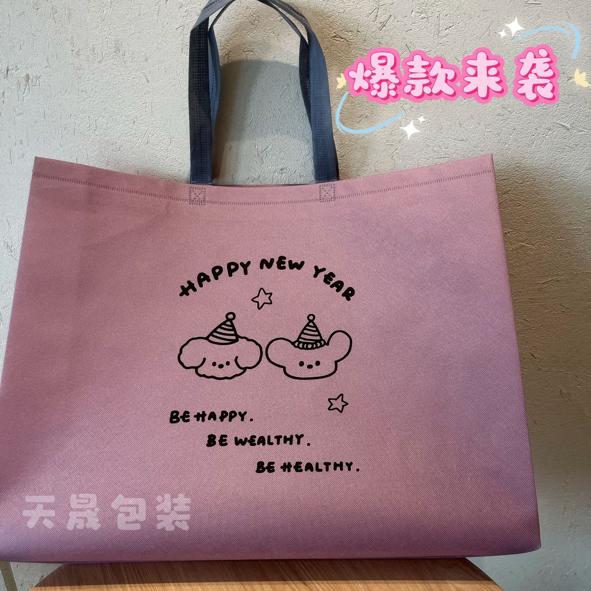 폭발적인 귀여운 만화 부직포 핸드백 여성 의류 매장 만화 환경 보호 광고 쇼핑 손 가방 의류 인쇄