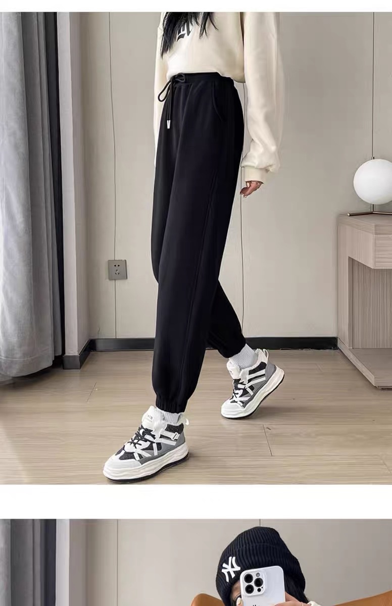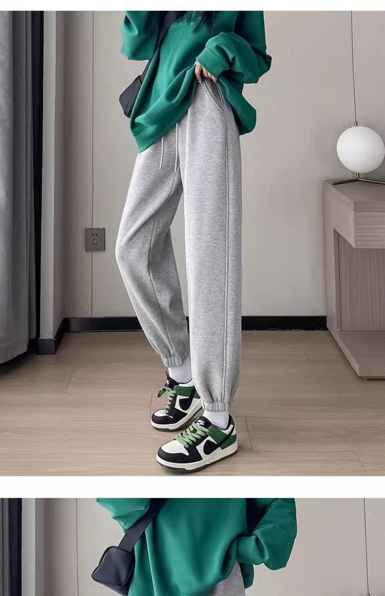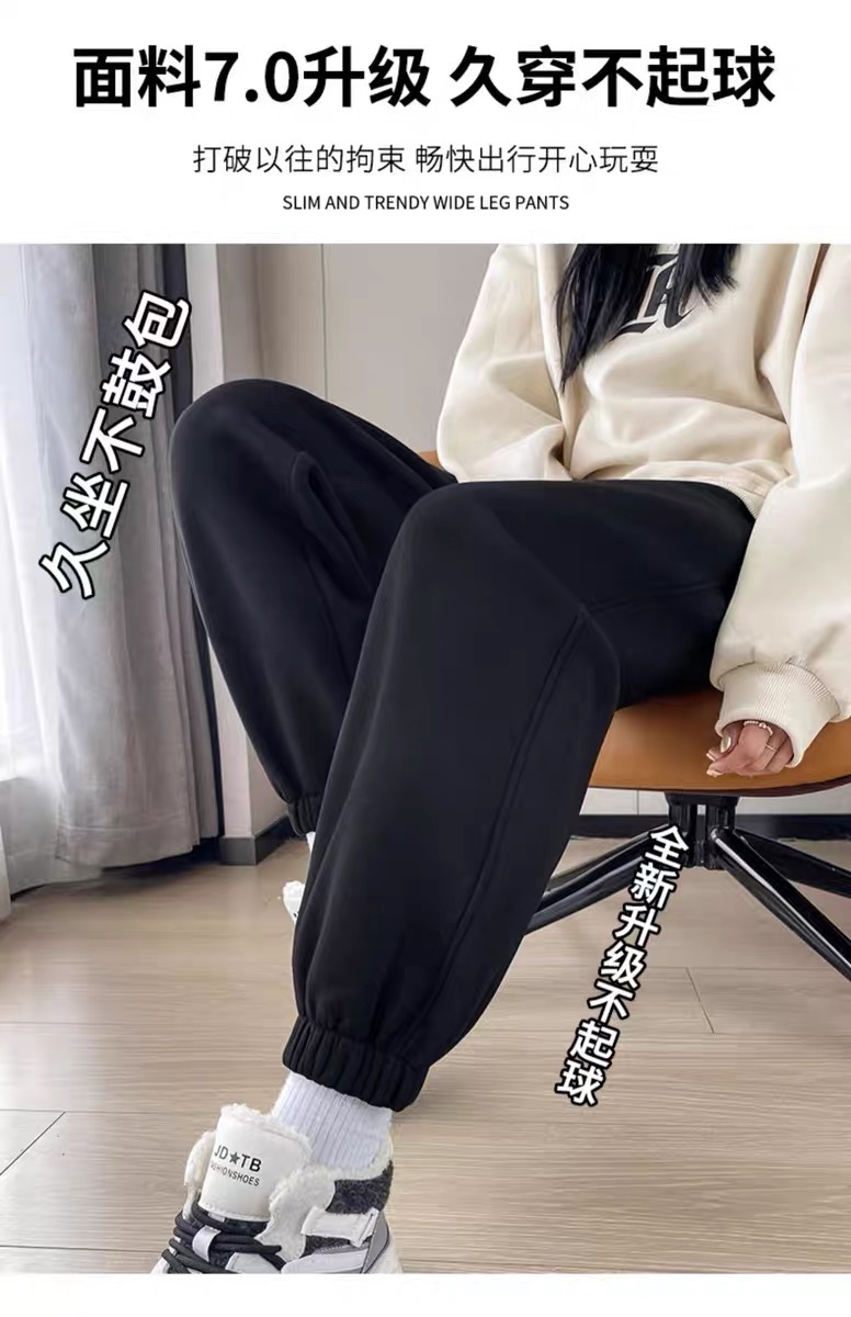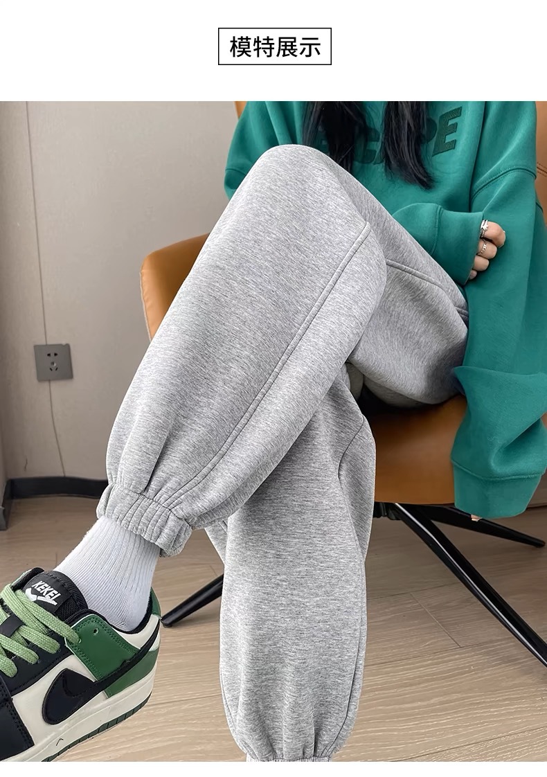 플러스 사이즈 스포츠 바지 여자 겨울 느슨한 올 매치 기모 두꺼운 캐주얼 바지 폭발성 작은 슬림 룩 스웨트 팬츠