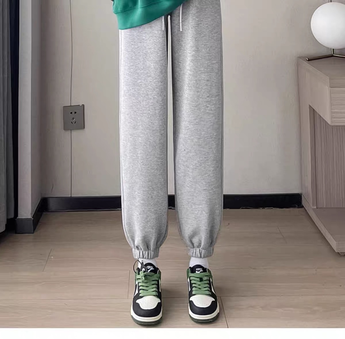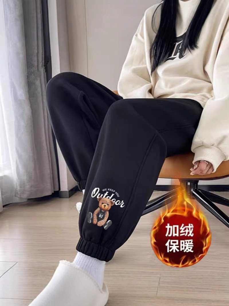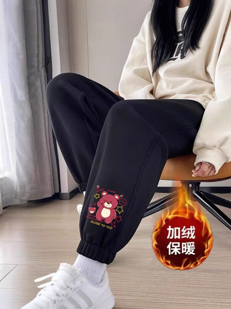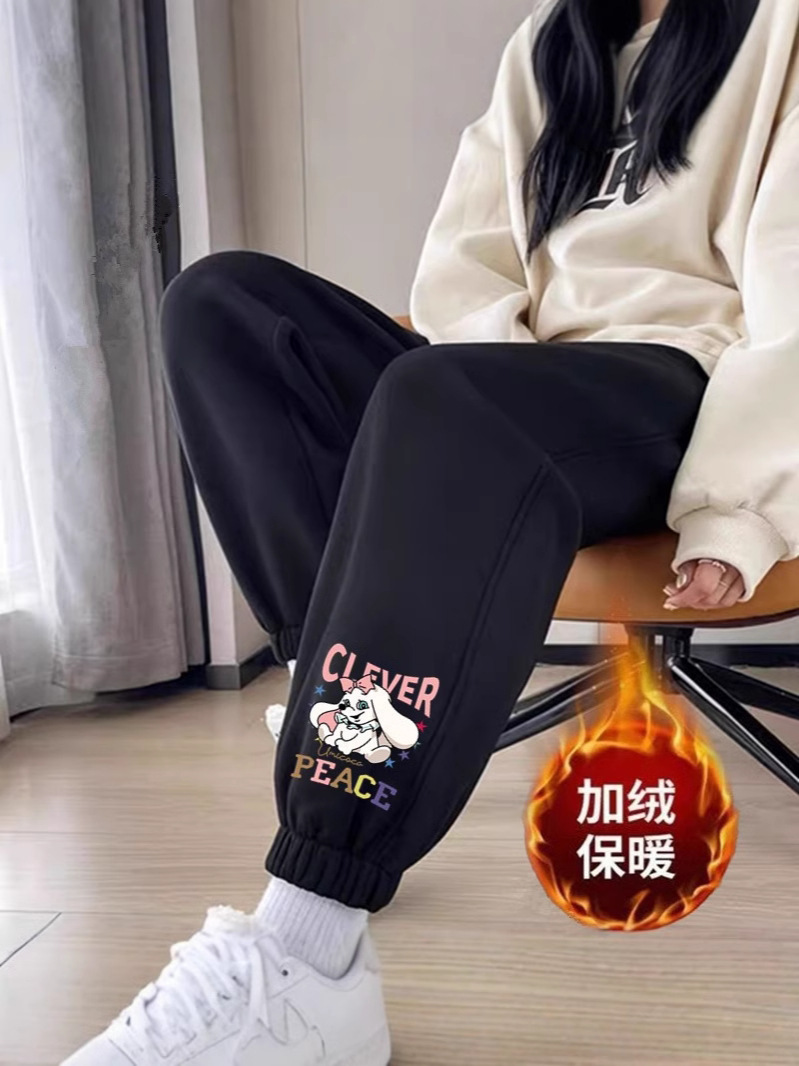 플러스 사이즈 스포츠 바지 여자 겨울 느슨한 올 매치 기모 두꺼운 캐주얼 바지 폭발성 작은 슬림 룩 스웨트 팬츠