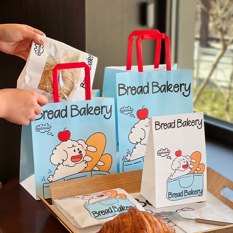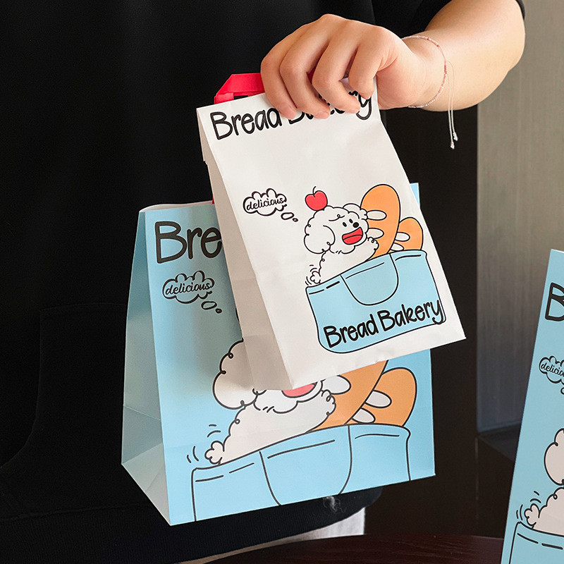 강아지 빵 풀 패키지 디저트 토트 백 베이킹 백 케이크 가게 테이크 크래프트 종이 가방 맞춤