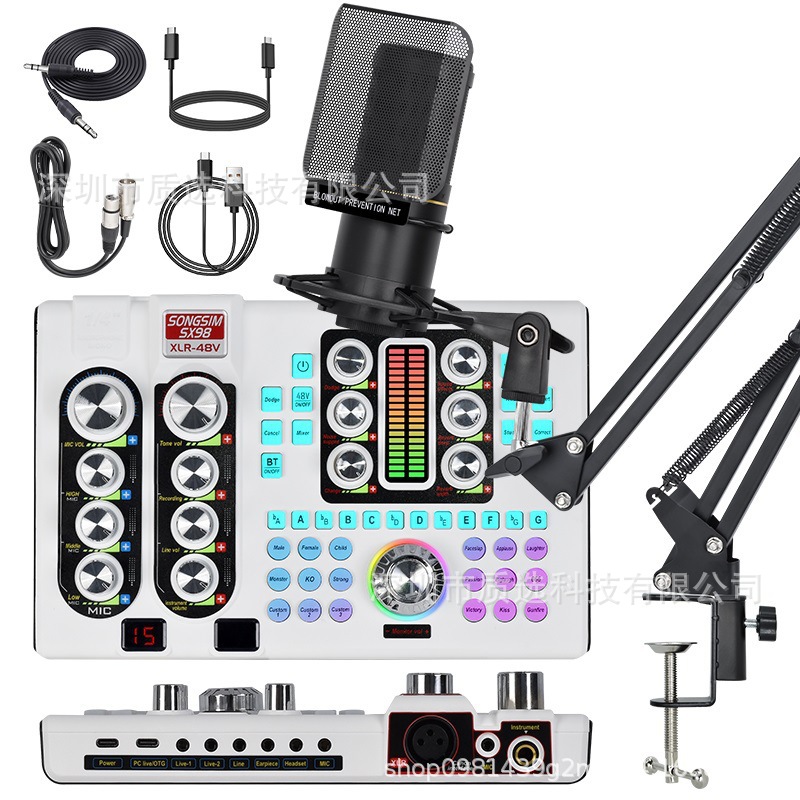 영어 버전 사운드 카드 세트 ZX320 콘덴서 마이크 48V 국경 간 핫 세일 라이브 녹음 캔틸레버 사운드 카드 세트