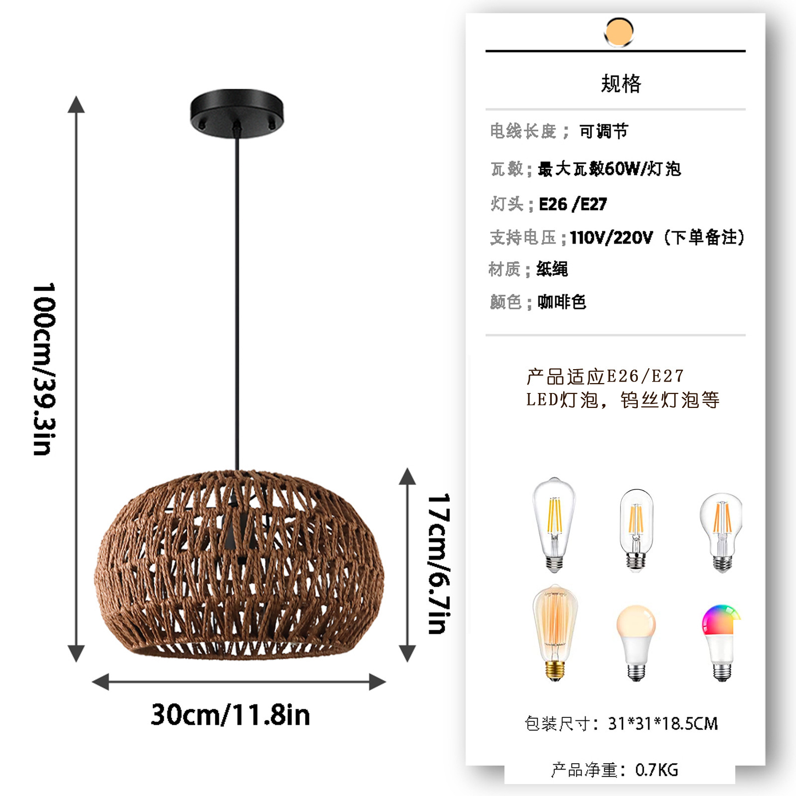 스타일 복고풍 샹들리에 종류 등나무 펜던트 조명 인증 미국 UL 인증 스마트타입 지능 없음 광원 유형 백열등 램프 본체 재질 잔디 덩굴 품목 번호 100 높이 조절 가능 1 브랜드 안조명 전압 110-220 밝은 색상 갈색 광원 전력 전구는 포함되어 있지 않습니다 조사 영역 10㎡ -15㎡ 국경 간 수출 전용 공급 여부 예 주요 다운스트림 플랫폼 독립 스테이션 주요 판매지역 북미 집까지 배달되나요? 아래층으로 배달 머리 수 단일 헤드 샹들리에 특허가 있나요? 아니요 적용 가능한 시나리오 호텔 B&B 설치 서비스 제공 가능 여부 아니요 원산지 중산 전등갓 재질 양피지 유형 샹들리에 적용 가능한 공간 레스토랑 -
