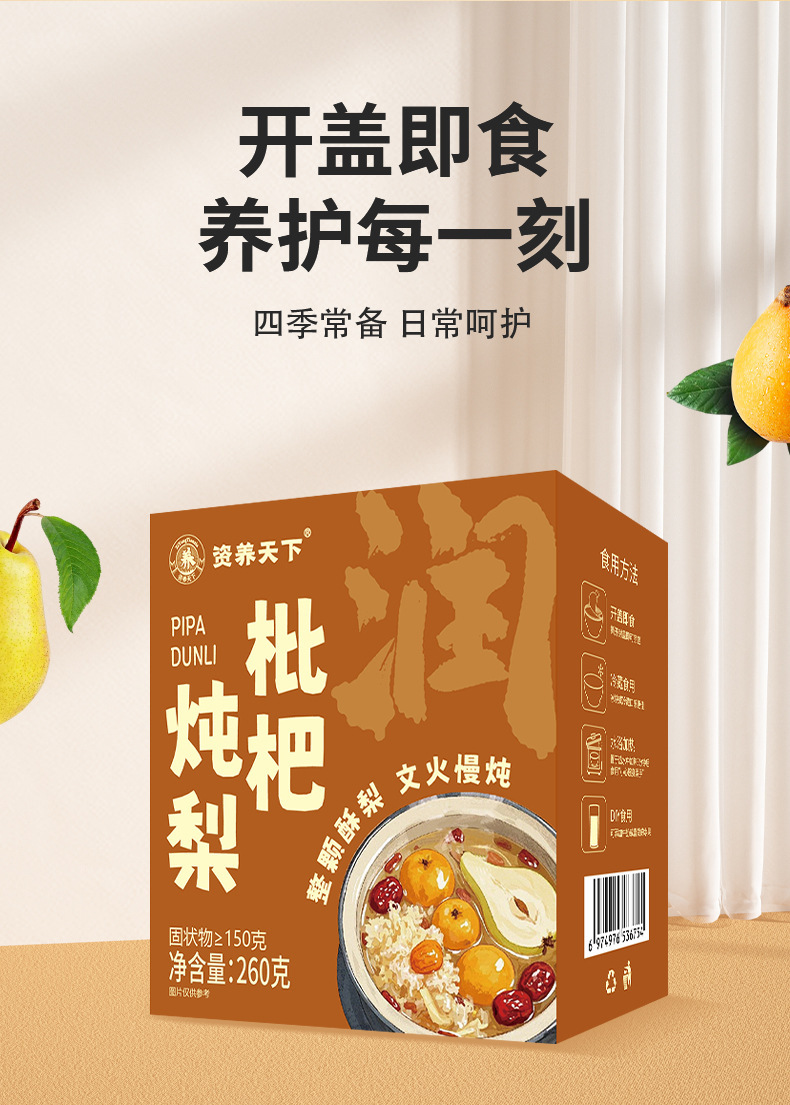 상품 바코드 69247897263 수입 여부 아니요 원산지 안후이 제품 카테고리 통조림 비파배 유효기간 6개월 브랜드 세계를 지양하다 내용량(사양) 260g 제조사 안후이시칭건강산업발전유한회사 원료 및 성분 비파, 배, 흰목이, 붉은 대추, 암설탕 생산일자 최근에는 보관방법 실온에서 서늘하고 건조한 곳에 보관하세요 생산 허가 번호 SC10634160330917 품목 번호 비파찌개 배 260g 포장 사양 260g 맛 비파배찌개 공급 시간 6월 선물상자에 들어있나요? 아니요 보관 조건 상온 생산 과정 고온찜 제품 인증 아니요 -