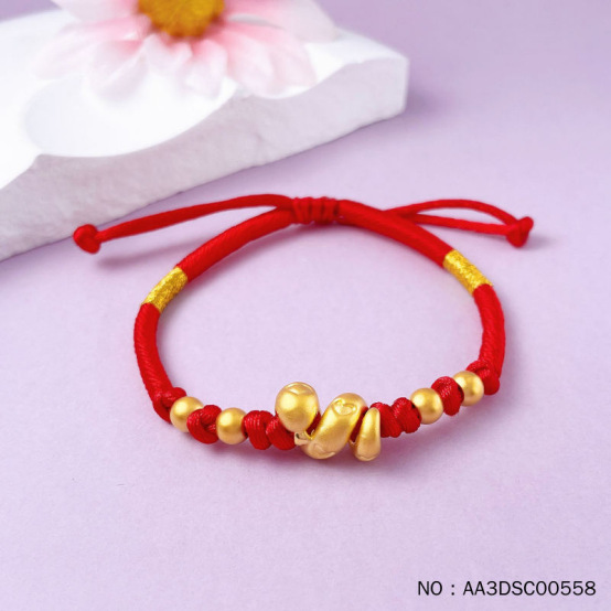 3D硬金足金空心缠绕卷卷蛇生肖蛇招财纳福好运连连编绳手串成品