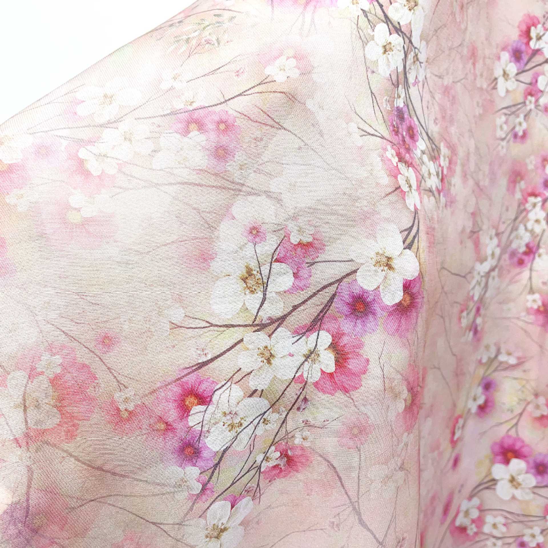 부드러운 로맨틱 디지털 인쇄 원단을 인쇄하는 Guofeng 핑크 매화 재고 텐셀