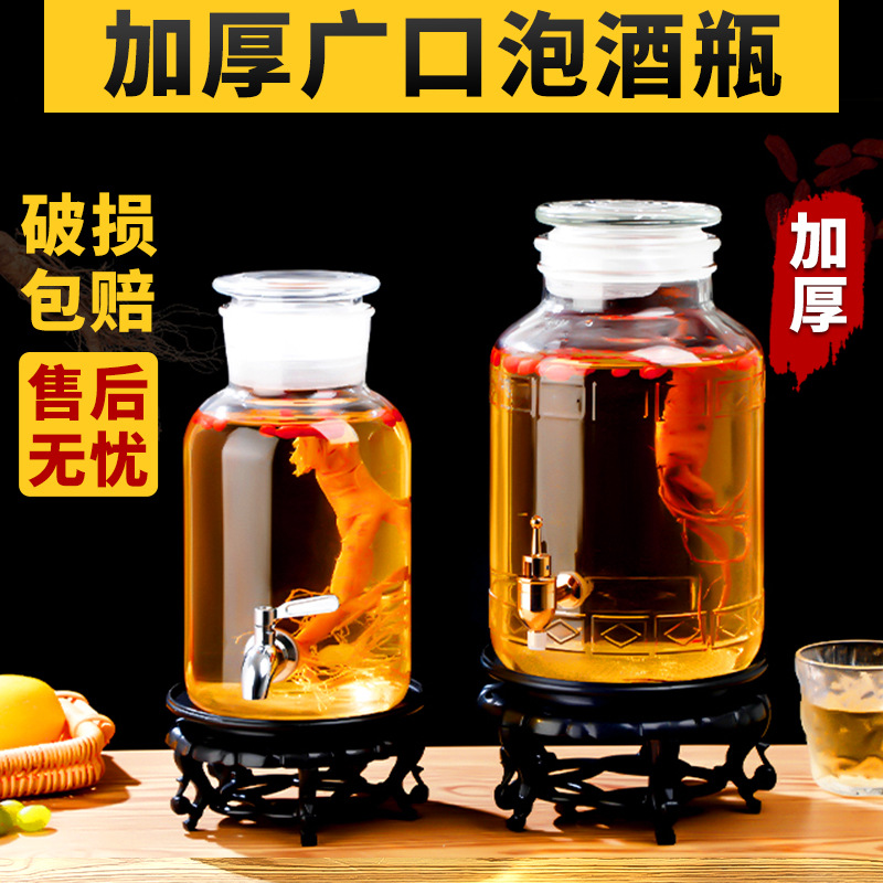 수도꼭지가 두꺼운 과일 와인 항아리 가정용 고급 밀봉 10kg 20kg 와인 병이있는 서리 유리 와인 병