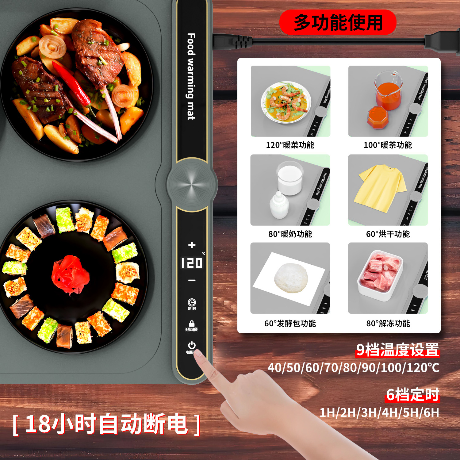 브랜드 다른 레이아웃 직경 정사각형 100*38cm 품목 번호 WARMING-F0010PRO 정격 출력 550W 정격 전압 220V 무게 2500g 사용자 정의 지원 여부 예 원산지 광둥성 동관 모델 유럽 CE 유럽 규정 최소 주문량 500 주요 다운스트림 플랫폼 다른 주요 판매지역 다른 라이센스가 있는 개인 브랜드가 있습니다. 아니요 국경 간 수출 전용 공급 여부 예 주요 기능 따뜻한 요리, 건조, 해동, 따뜻한 차, 따뜻한 와인, 따뜻한 우유 전자 보조 기능 9단계 온도 조절, 안전한 어린이 잠금 장치, 절전, 10개 접시 가열 가능, 8초 만에 빠르게 가열 가능 보안 기능 가장자리는 화상 방지 디자인으로 테이블을 손상시키지 않으며 미끄럼 방지, 가열 및 냄새가 없으며 다양한 식기 재료에 적합합니다. -