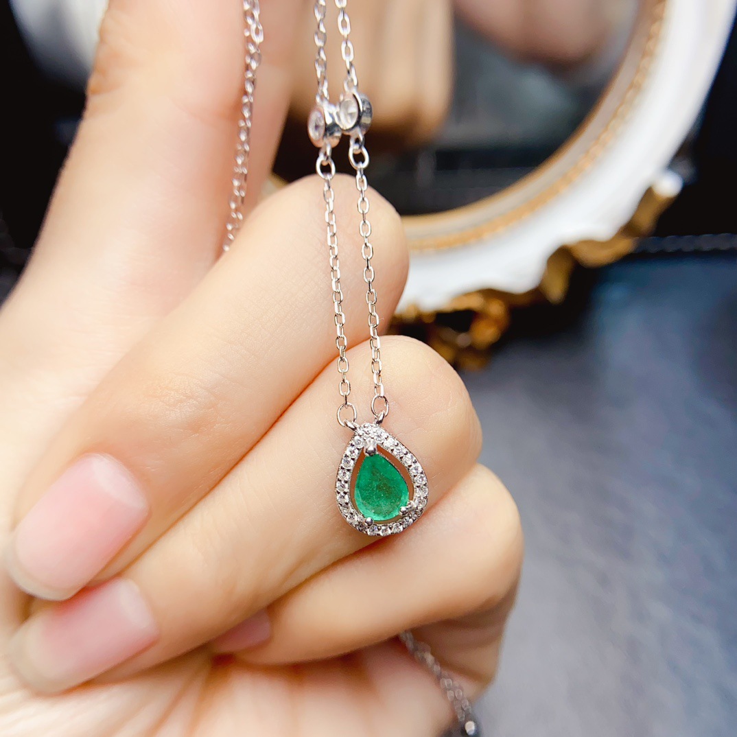 공장 도매 폭발 천연 에메랄드 목걸이 S925 실버 상감 메인 스톤 5*7 판매 유럽과 미국 머리카락 세대