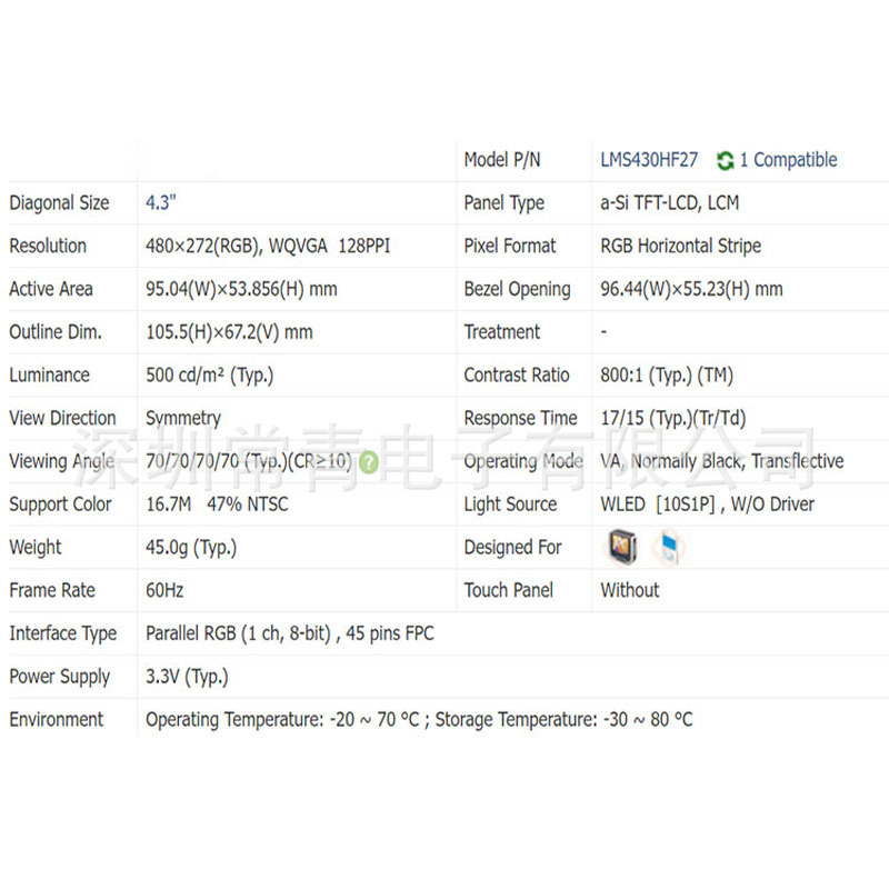 제품 사양 LMS430HF27